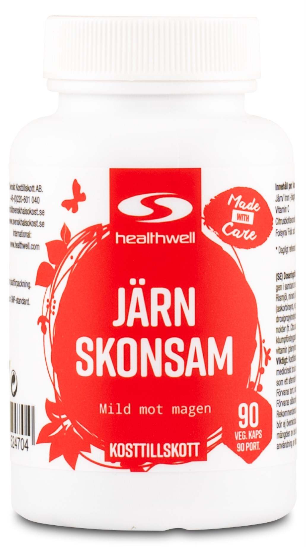 Jern Skånsom er et jerntilskud, som er skånsomt mod maven, og har tilsat C-vitamin for en optimal optagelse. Jern Skånsom er også forstærket med folsyre og citrusbioflavonoider, som hjælper ved dannelsen af røde blodlegemer. Formlen jernbisglycinat, som findes i Jern Skånsom-kapslerne, er en form for jern med en høj biotilgængelighed, som kroppen har nemmere ved at optage. Når jern er bundet til aminosyren glycin kan det transporteres uændret gennem mavesækken, og dernæst absorberes direkte i tyndtarmen. Dette bevirker, at bivirkninger som forstoppelse, som ellers er normale, når man tager et jerntilskud, kan undgås. En kapsel Jern Skånsom indeholder 20 mg jern, hvilket dækker dit behov for jern.