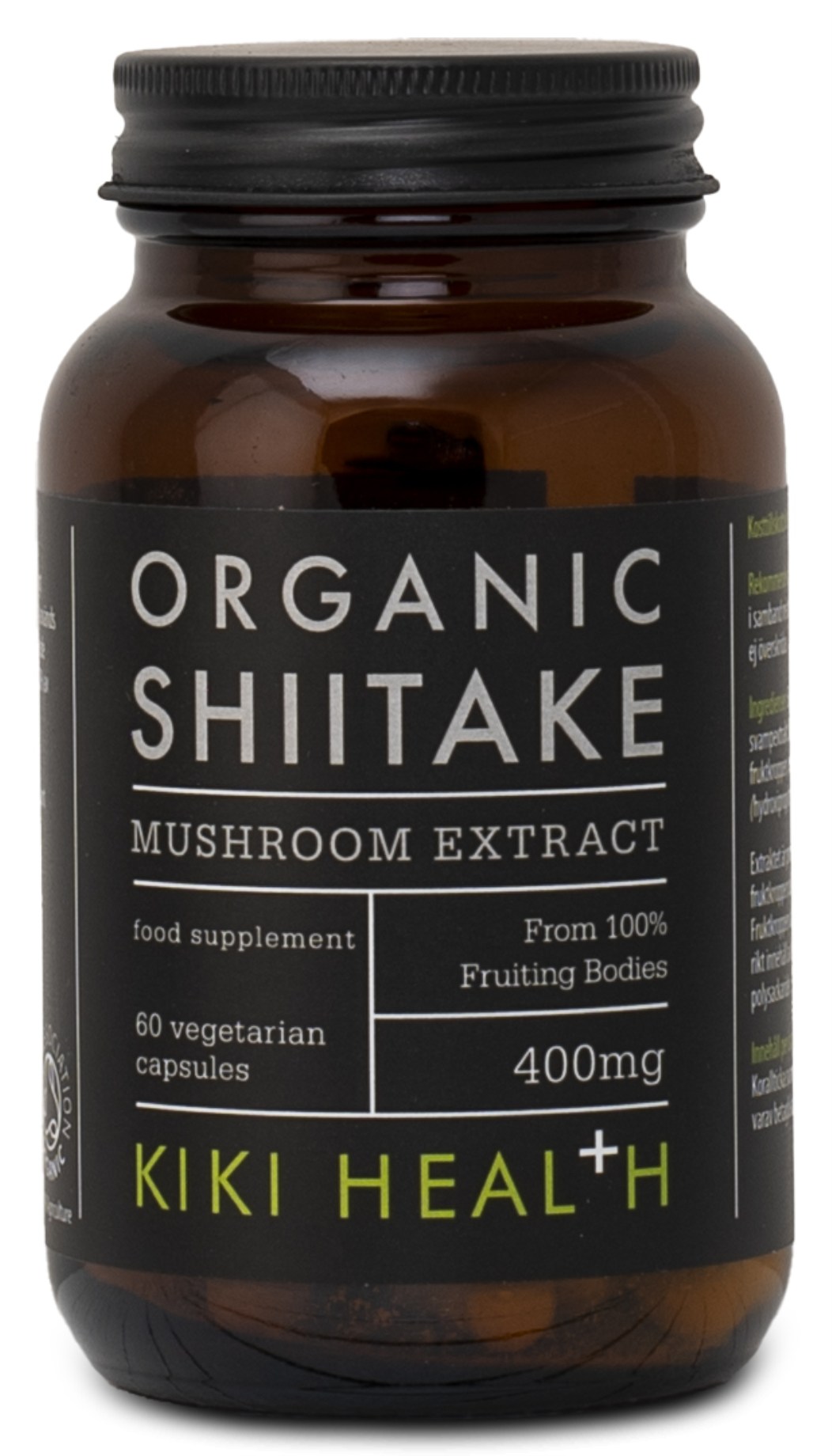 Kiki Health Organic Shiitake Mushroom Extract er et ekstrakt af høj kvalitet fra økologisk shiitakesvamp. Ekstraktet er helt rent, koncentreret og fri for tilsætningsstoffer. Kun svampens frugtlegeme bruges, hvilket giver et ekstrakt med et højt indhold af betaglukaner. Ved at bruge ekstraktet kan du nemt drage fordel af alle de næringsstoffer, som shiitakesvampen har at byde på.