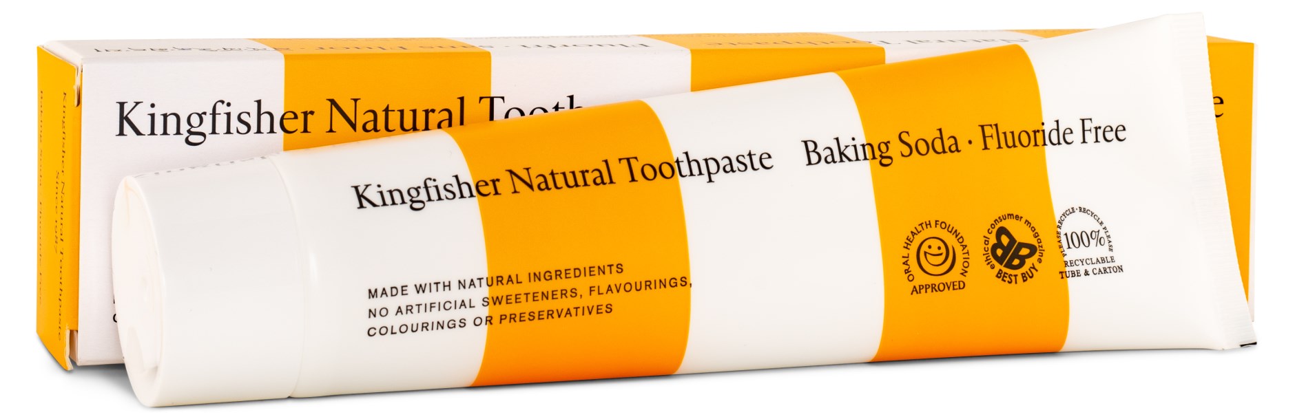 Tandpasta Baking Soda Mint fra Kingfisher er en fluorfri tandpasta, der naturligt giver hvidere tænder ved hjælp af bagepulver. Tandpastaen har en vidunderlig og frisk mintsmag, der giver en ren og frisk følelse i munden. Tandpasta Baking Soda Mint er helt fri for farvestoffer, aromaer, sødestoffer og konserveringsmidler og er også fri for råvarer af animalsk oprindelse. Tandpastaen bliver din nye favorit til dagligt brug!