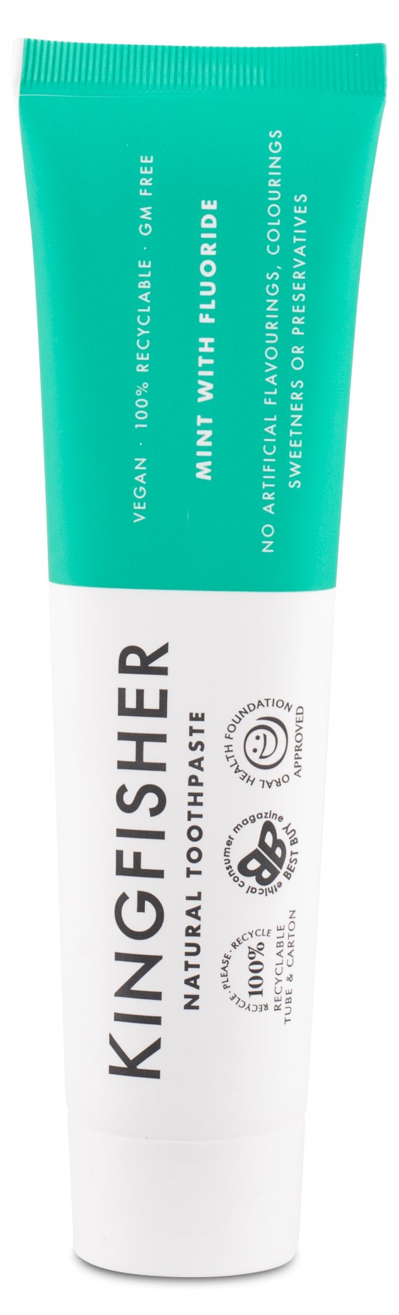 Tandpasta Mint Fluor er en fluortandpasta fra Kingfisher. Denne naturlige tandpasta er helt fri for unødvendige tilsætningsstoffer, som eksempelvis farvestoffer, smagsstoffer, konserveringsmidler og sødestoffer, og indeholder heller ingen animalske ingredienser. Tandpasta Mint Fluor bliver en ny favorit til dagligt brug!