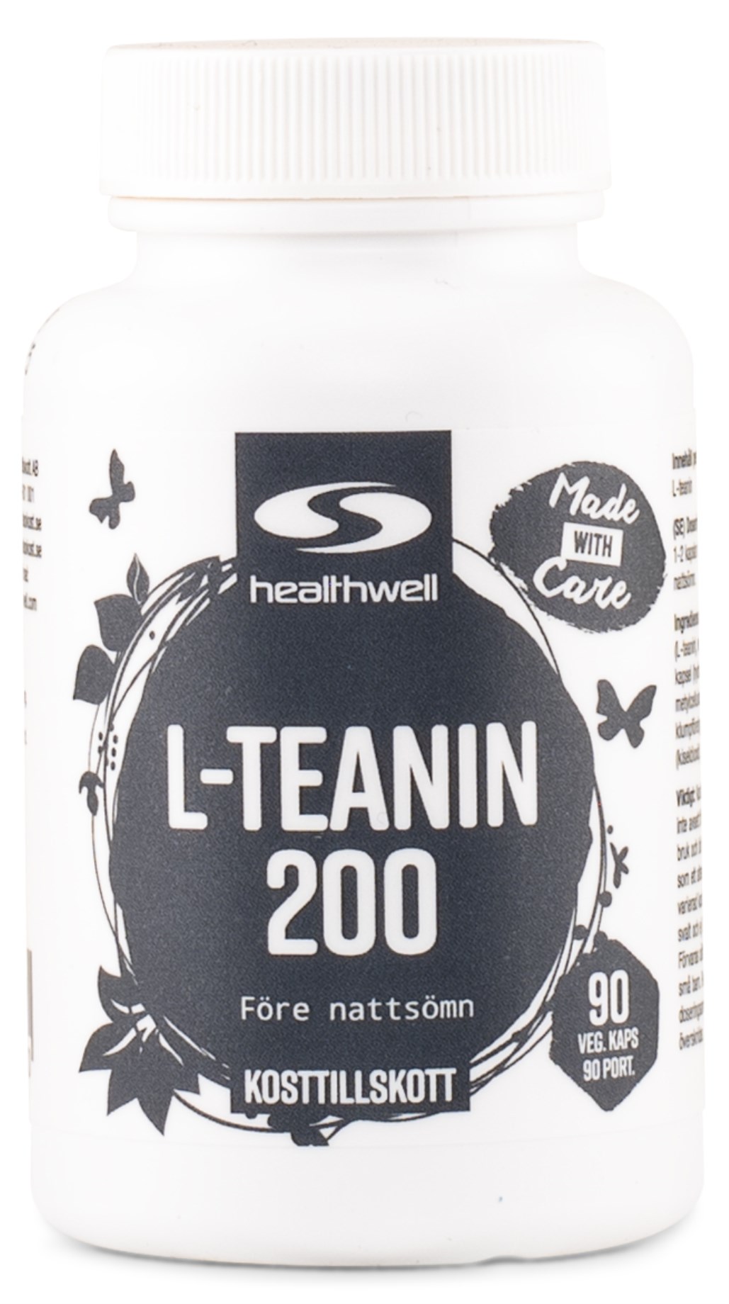 Healthwell L-theanin 200 er et kosttilskud med aminosyren theanin i koncentreret form. Theanin findes naturligt hovedsageligt i tebuskens blade og især i grøn te. I kroppen menes aminosyren at hjælpe med frigivelsen af serotonin og dopamin fra hjernen. Disse neurotransmittere påvirker vores humør og vores belønningssystem og gør os rolige og glade. Det er måske derfor ikke så mærkeligt, at mange mennesker godt kan lide at få en kop grøn te inden de skal sove. Healthwell L-theanin 200 indeholder 200 mg theanin per portion, og du kan nemt dosere ved at tage en kapsel inden sengetid.