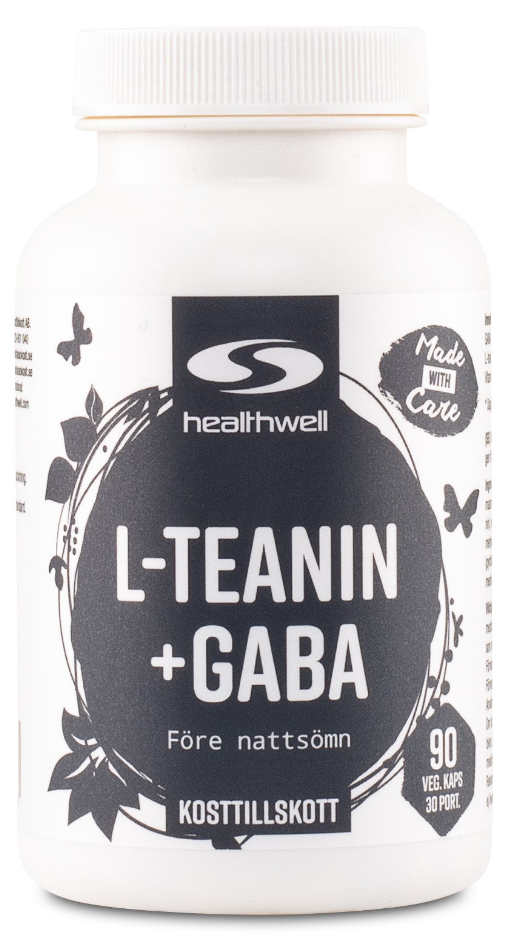 Healthwell L-theanin og GABA er et kosttilskud med de interessante stoffer L-theanin og GABA i fleksible vegetabilske kapsler. L-theanin er en aminosyre, der findes naturligt i grøn te, og GABA (gamma-aminosmørsyre) virker som en hæmmende neurotransmitter i kroppens nervesystem, og begge dele er blevet fremhævet i flere undersøgelser om nedvarming. Stofferne supplerer hinanden på en god måde og kan ifølge forskning være ekstra gavnlige, når de tages sammen. Forstærket med L-theanin og vitamin B6, som bidrager til nervesystemets funktion. En portion (3 kapsler) giver hele 1600 mg GABA og 400 mg L-theanin. Tages før sengetid for den bedste effekt!