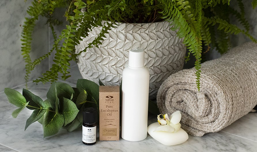 | • Tilsæt 3 dråber æterisk olie, eukalyptusolie er f.eks. forfriskende på huden |