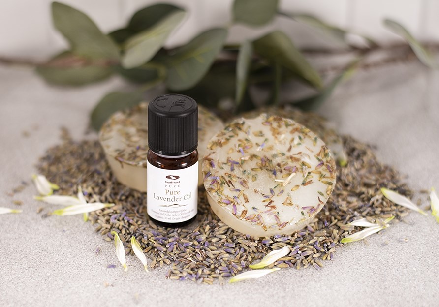 Æterisk lavendelolie giver en sæbe med en afslappende og beroligende duft.