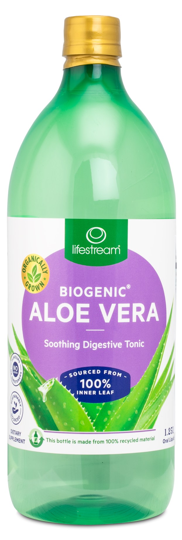 Lifestream Aloe Vera Juice er en juice lavet af friskhøstede Aloe Vera Barbadensis blade. Juicen har en naturlig mild og frisk smag. Planterne, der bruges til juicen, er økologisk dyrket uden pesticider og toksiner, og er kvalitetssikret af IASC (International Aloe Research Council). Drik juicen som den er eller bland med vand eller juice på tom mave.