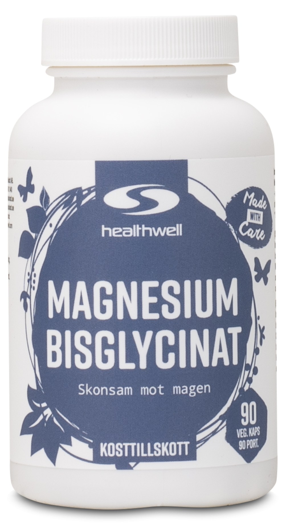 Healthwell Magnesium Bisglycinat indeholder magnesium, der er bundet til aminosyren glycin, hvilket adskiller disse kapsler fra mange andre tilskud med magnesium. Magnesiumbisglycinat giver en højere biotilgængelighed netop takket være glycinet, som kroppen har meget nemt ved at identificere og transportere gennem tarmslimhinden. Magnesiumet kan derefter let optages og transporteres til cellerne. En sandsynlig årsag til, at netop magnesiumbisglycinat har en særligt høj biotilgængelighed, er at glycin forbedrer opløseligheden i tilskuddet og dermed også gør det nemmere for kroppen at optage. De, der normalt er følsomme overfor magnesium, kan desuden opleve færre maveproblemer med magnesiumbisglycinat, så hvis du ønsker et tilskud af magnesium, kan denne letoptagelige form være et glimrende alternativ.