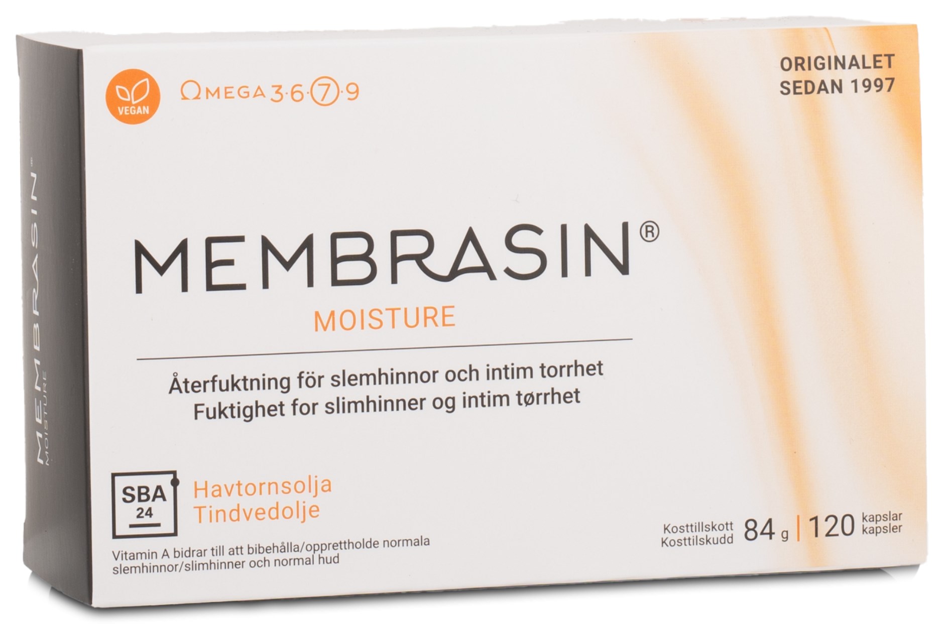 Plages du af tørre slimhinder? Så kan et kosttilskud som Membrasin® lette din hverdag. Membrasin® er et kosttilskud, der indeholder ekstrakt fra havtorn. Havtornsbær er naturligt rige på flere fedtsyrer og vitaminer som omega 7, vitamin E og vitamin A, der bidrager til en smørende effekt på slimhinder i øjnene, næsen, munden og underlivet.