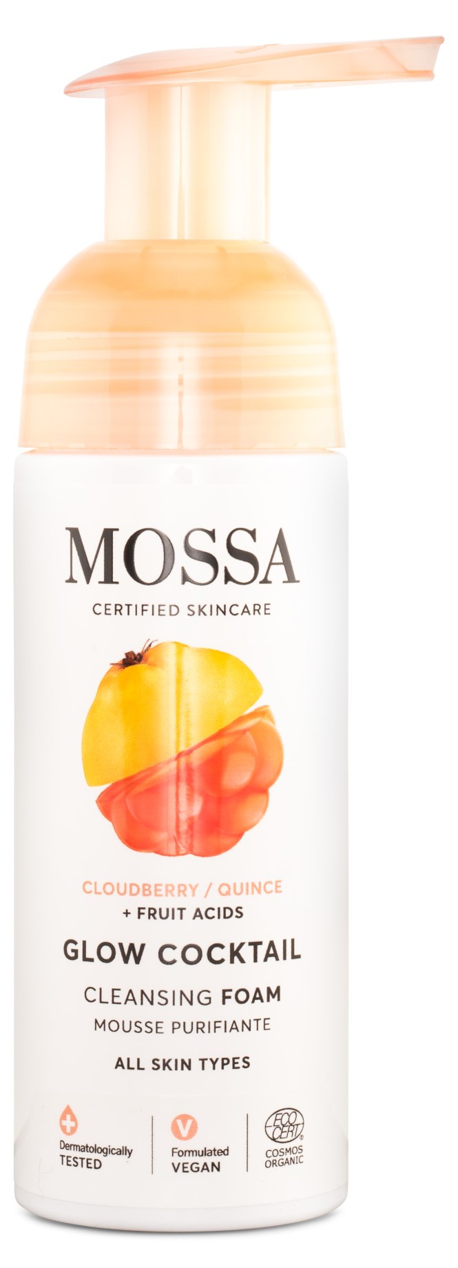 Rens din hud og giv den glød med Mossa Glow Cocktail Renseskum, en renseskum som skånsomt fjerner makeup og urenheder. Indeholder ekstrakter fra kvæder og multebær, som er rige på vitaminer og frugtsyre, og som giver en jævnere hudtone og genopretter hudens glød. Perfekt til dig, der ønsker at give liv til træt hud!