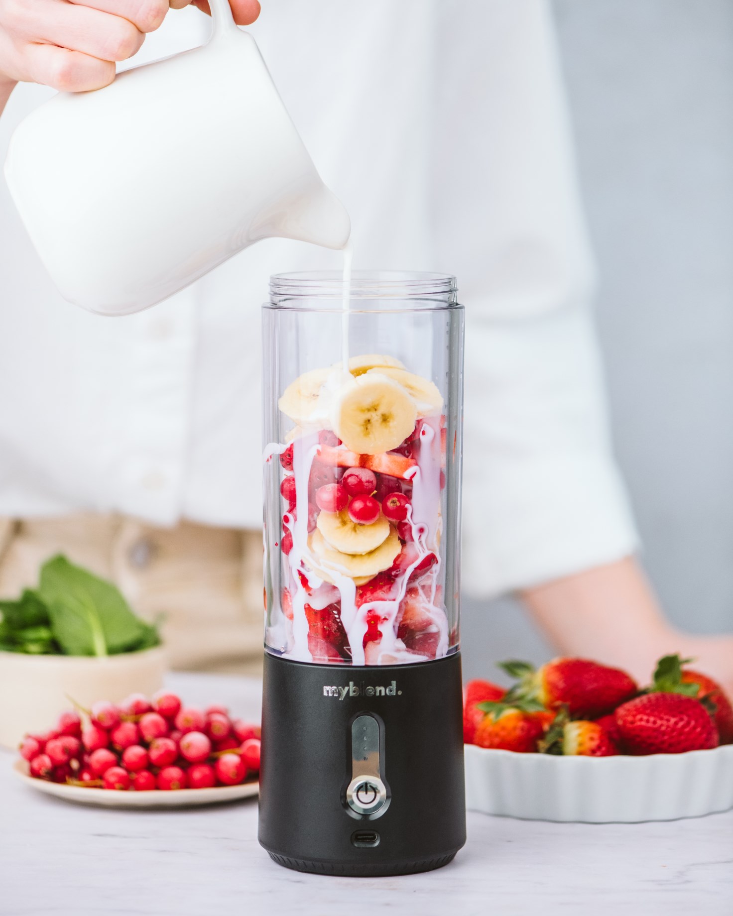 Myblend 3 Portable Blender er en bærbar og ledningsfri mixer, der er perfekt at bruge både derhjemme, på arbejdet, i fitnesscentret eller på farten. Den har en kompakt størrelse, der gør den nem at have med i tasken. Myblend 3 Portable Blender har desuden en avanceret turboteknologi, der gør den meget effektiv – på kun 20 sekunder kan du blande alt fra smoothies og proteinshakes til babymad, dressinger og saucer. Mixeren oplades via USB (kabel medfølger) og en opladning rækker til, at du kan blende 15+ gange.