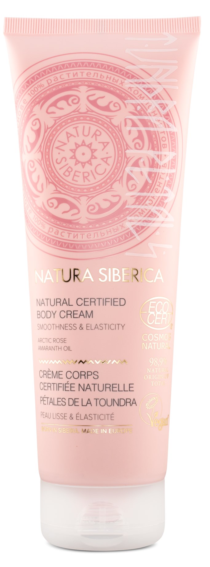 Natura Siberica Body Cream er en fugtgivende hudcreme med økologiske planteekstrakter og olier fra gavnlige planter. Med blandt andet roseekstrakt og økologisk amarantolie, som begge tilfører næring til huden. Perfekt til dem, der ønsker blød hud med langvarig smidighed! Velegnet til alle hudtyper.