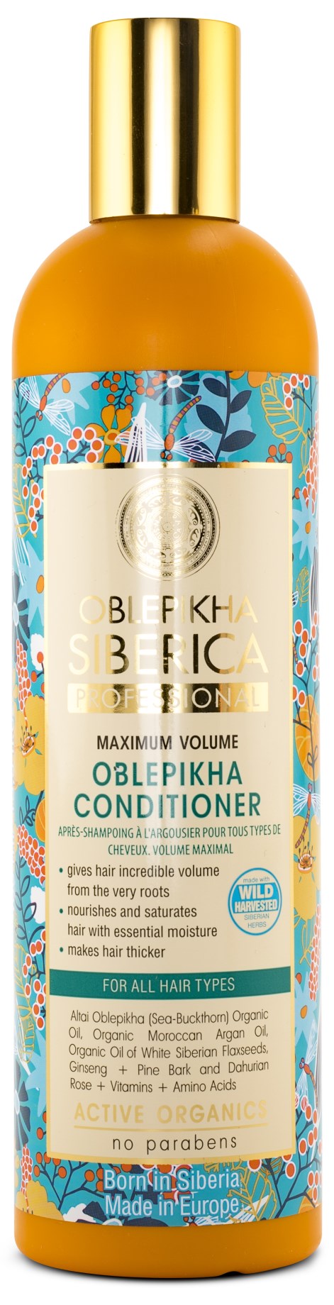 Oblepikha Siberica Conditioner Maximum Volume er en plejende og blødgørende balsam, der giver håret masser af volumen, samtidig med at det bliver skinnende og føles stærkt. Formlen med arganolie, havtornsolie og ekstrakter af forskellige planter nærer håret og beskytter det mod at blive dårligt beskadiget af opvarmning af stylingsværktøjer.