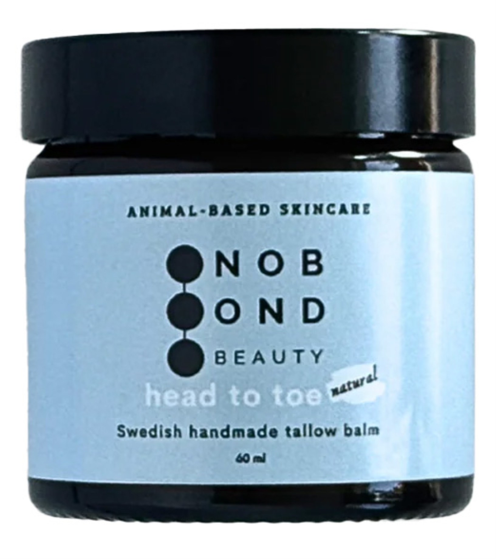 Head to Toe - Tallow Balm fra No Bond Beauty er en blødgørende og fugtgivende creme til hele kroppen, lavet af kun to ingredienser – svensk oksetalg og økologisk koldpresset olivenolie. Disse to ingredienser gør huden blød og giver næring og beskyttelse. Talgen har en fedtsammensætning, der ligner hudens egen, hvilket gør, at den hurtigt absorberes af huden. Cremen er fri for vand, konserveringsmidler, emulgerings- og fortykningsmidler og indeholder kun naturlige ingredienser med de naturligt vigtige fedtopløselige vitaminer A, D3, E, K2 og B12. Cremen er egnet til hele familien og værdsættes også af personer med sensitiv hud eller hudproblemer.