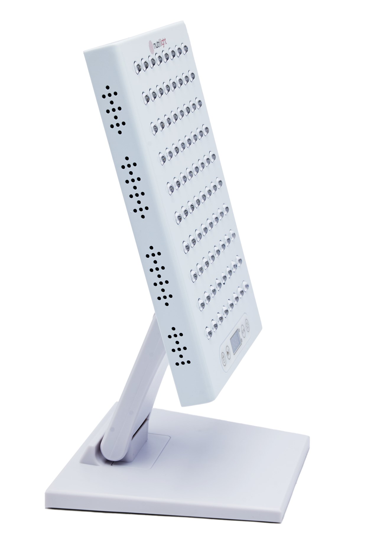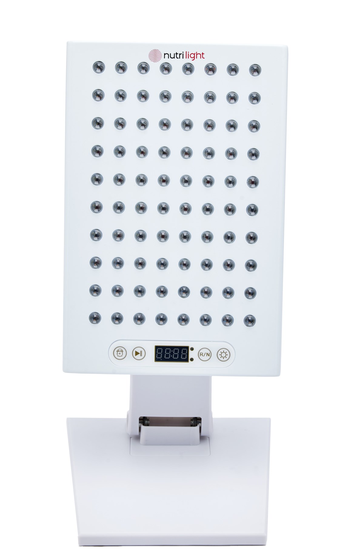 Start dagen med Nutrilight Rødtlys Lampe 400 W - The Fox for en dejlig morgen med varmende, rødt lys. Dette er lampen til dig, der ønsker at behandle større områder på kroppen. Du kan bruge den til blandt andet ansigt, ryg, skuldre og mave. Perfekt at meditere foran, have på skrivebordet når du arbejder eller på natbordet for at optimere din søvn. Kommer med en praktisk stander, som du nemt kan fastgøre på bordet eller på væggen. Lampen har 80 lysdioder med de mest videnskabeligt testede bølgelængder (660 nm rødt lys og 850 nm nær-infrarødt lys) for optimal effekt på sundheden.