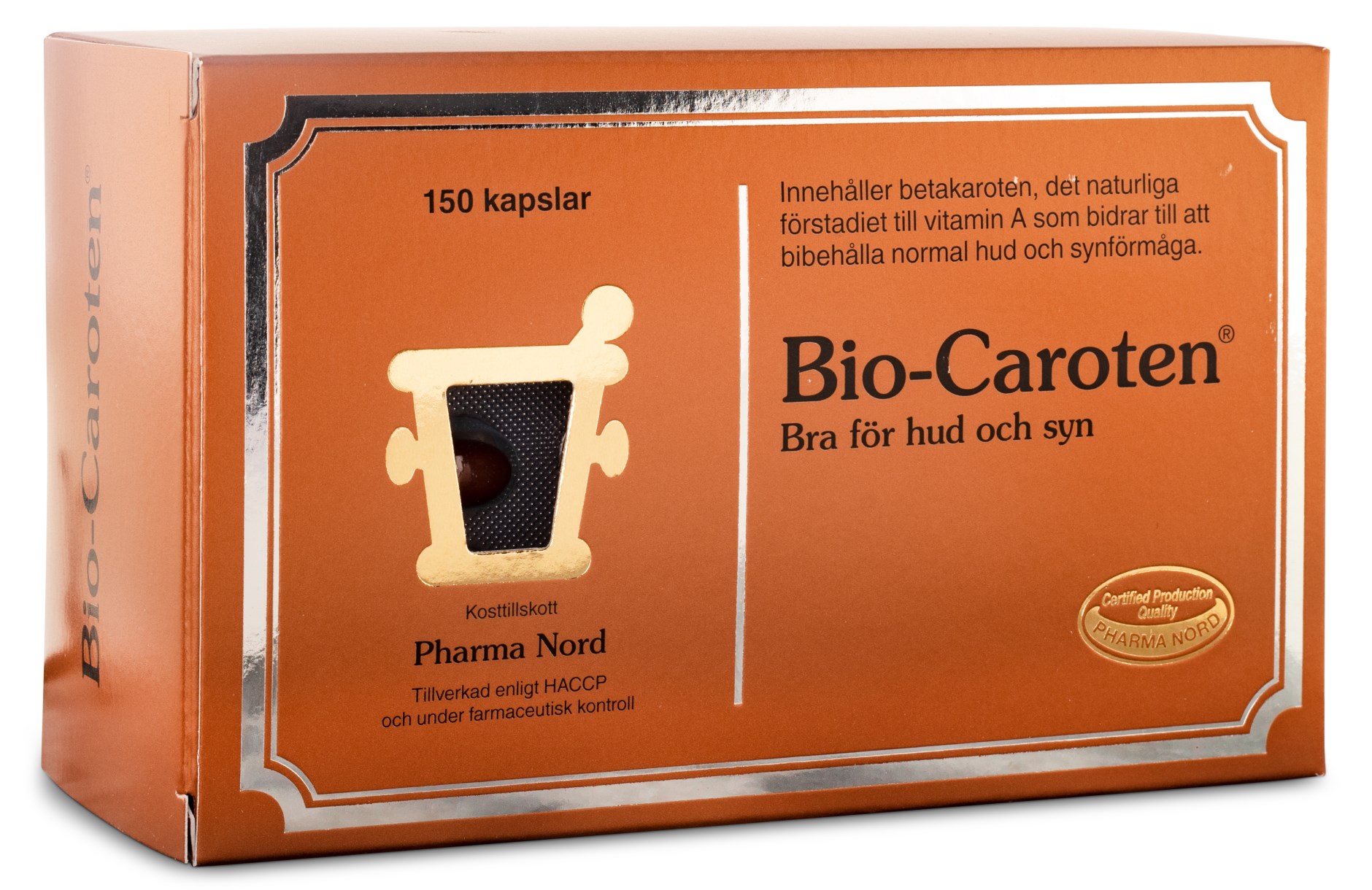 Bio-Caroten er et kosttilskud, som indeholder 9 mg rent, letoptageligt betakaroten. Betakaroten er det naturlige forstadium til vitamin A (retinol). Det omdannes delvist til vitamin A i kroppen. Beta-karoten er en kraftfuld antioxidant, som dermed styrker vores organisme.