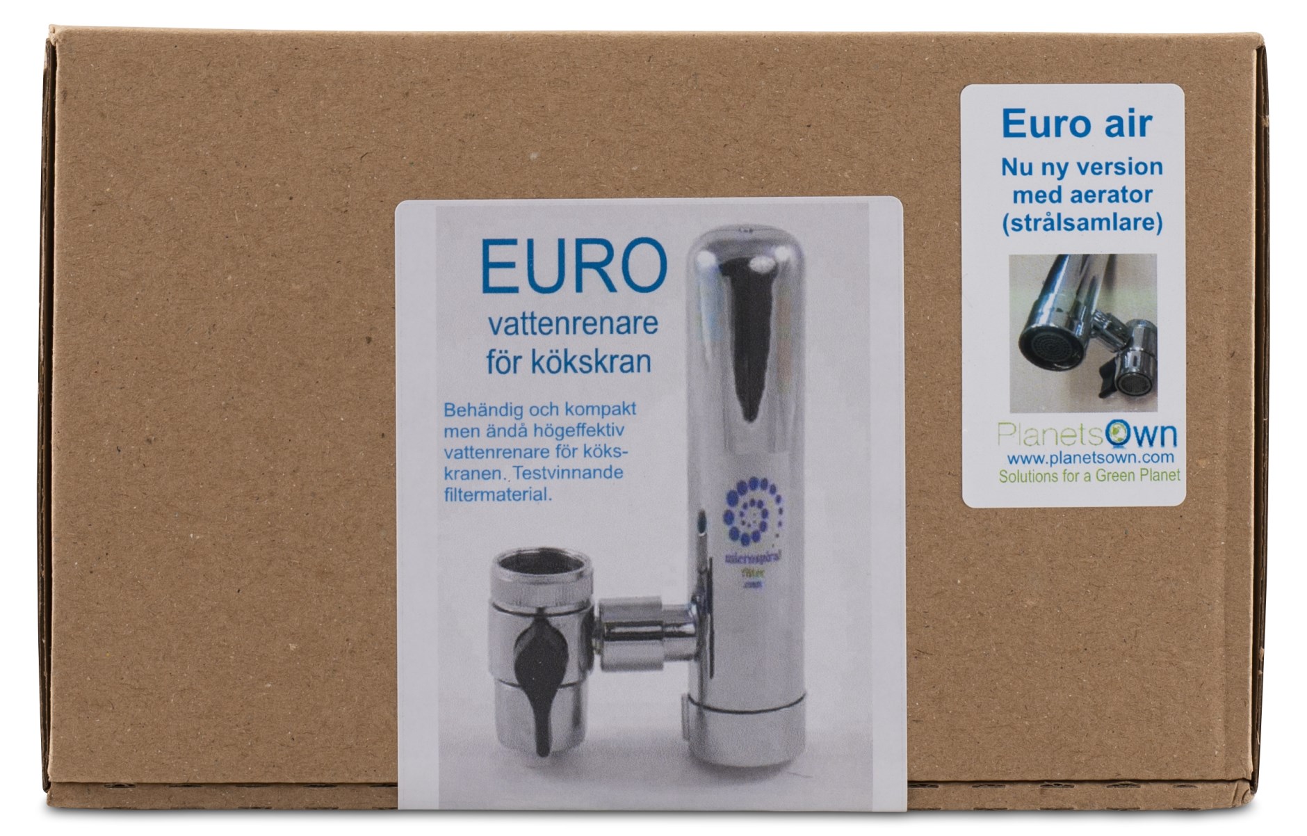 PlanetsOwn Vandrenser Euro Air, er en smart vandrenser, som du nemt kan skrue fast på din køkkenhane. Du slipper for slanger og ledninger, mens du får en meget effektiv drikkevandsrenser. Med strålesamler for et jævnt flow. Den er lille, men effektiv og hver patronen har en kapacitet til at rense op til 3000 liter vand.