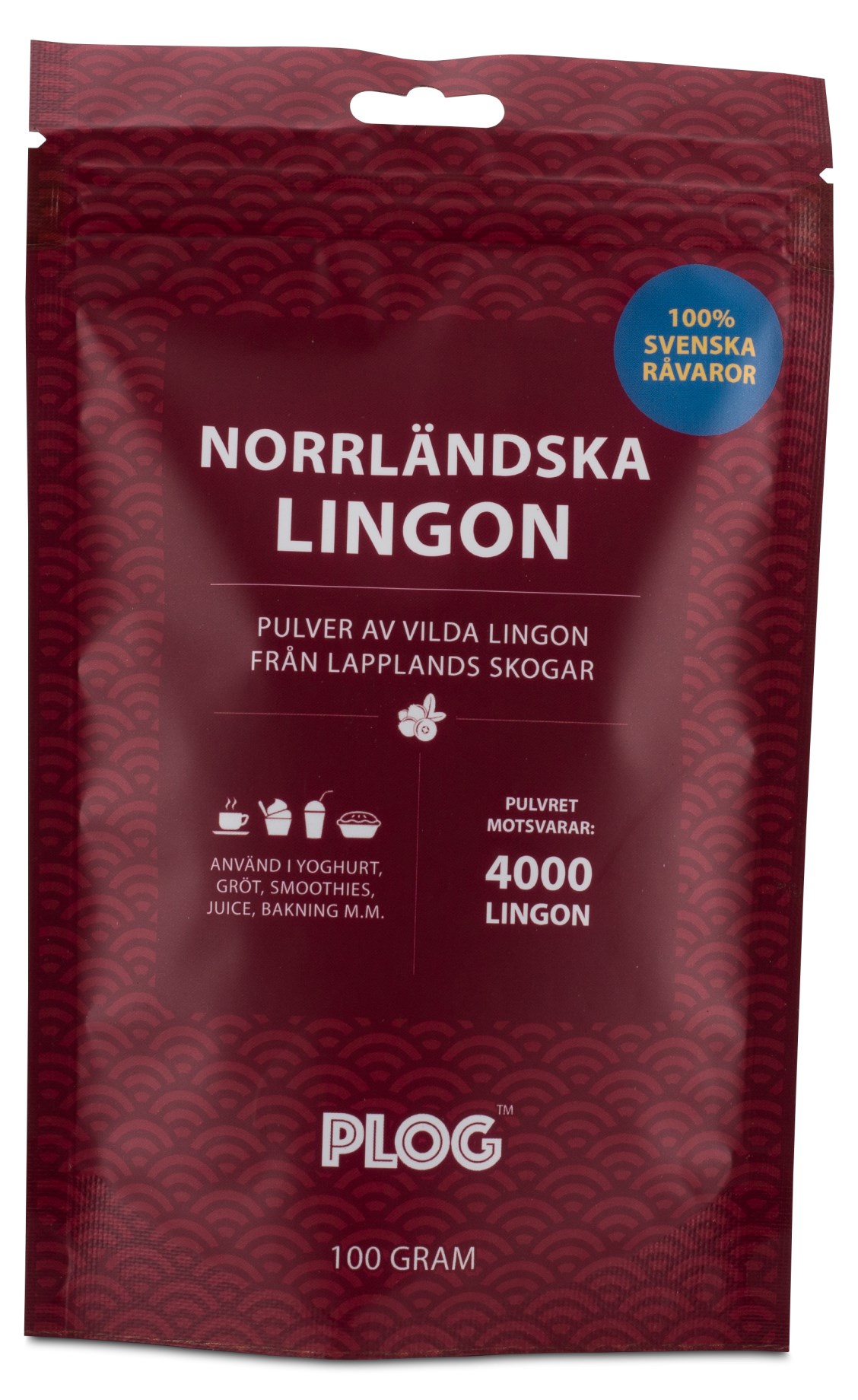 PLOG Nordlandske Tyttebær er et næringsrigt pulver med udelukkende svenske vilde tyttebær fra de nordlandske skove. Tyttebær er naturligt rige på antioxidanter, har antiinflammatoriske egenskaber og kan have en gavnlig effekt på tarmfloraens gode bakterier. Tyttebærpulveret er skånsomt tørret ved en temperatur på 42 grader, hvilket bevarer næringsstofferne. Hele tyttebær anvendes, hvilket gør pulveret rigt på fibre og fedtsyrer. Tilføj det gerne til grød, bagning eller smoothies for et ekstra næringsboost.