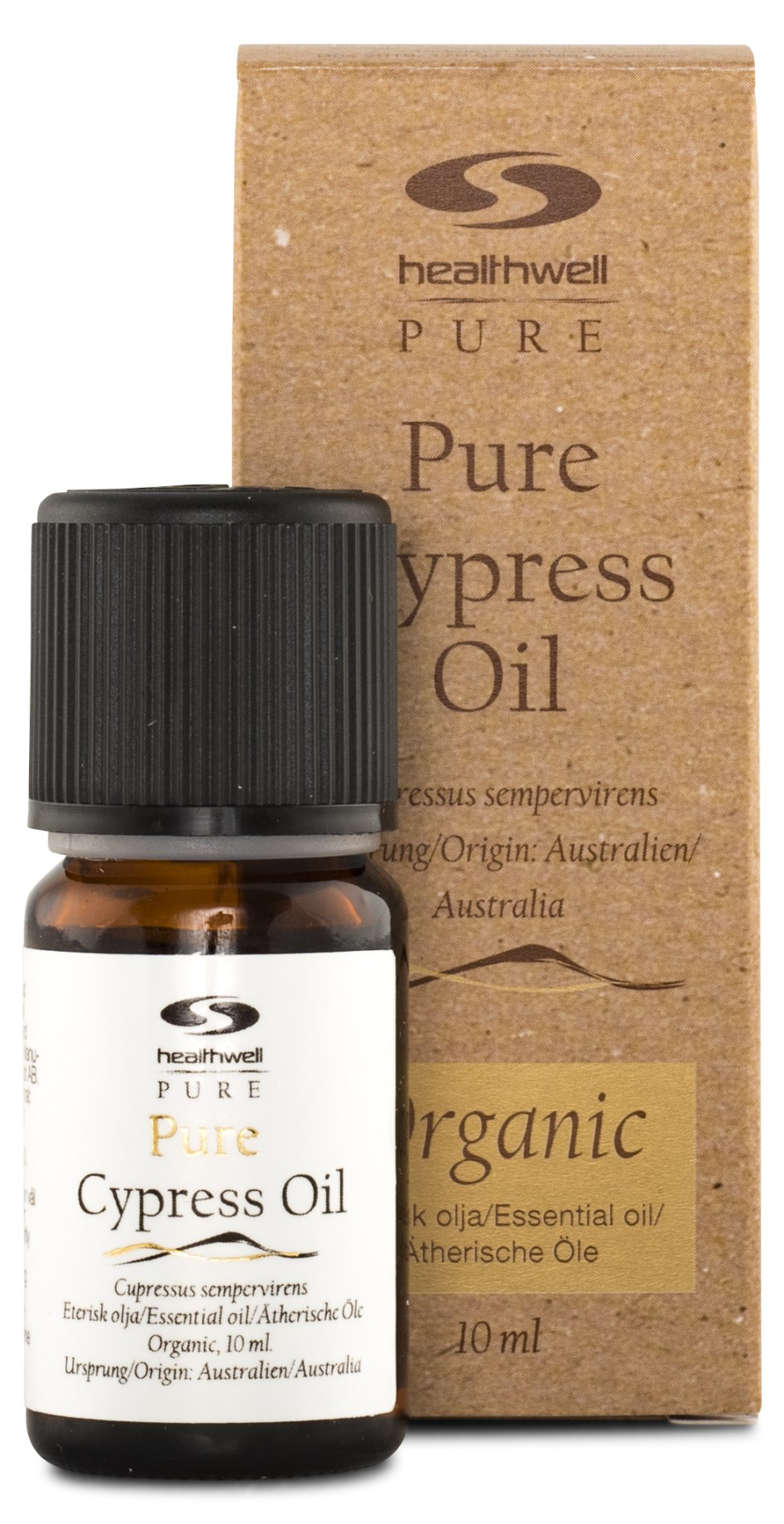Cypress har en antiseptisk virkning og er også sammentrækkende. Det bruges ofte i hudpleje til fedtet og uren hud til at udtørre og regulere fedtproduktion. Da olien har cirkulationsforbedrende egenskaber, er den også populær at bruge i massage
