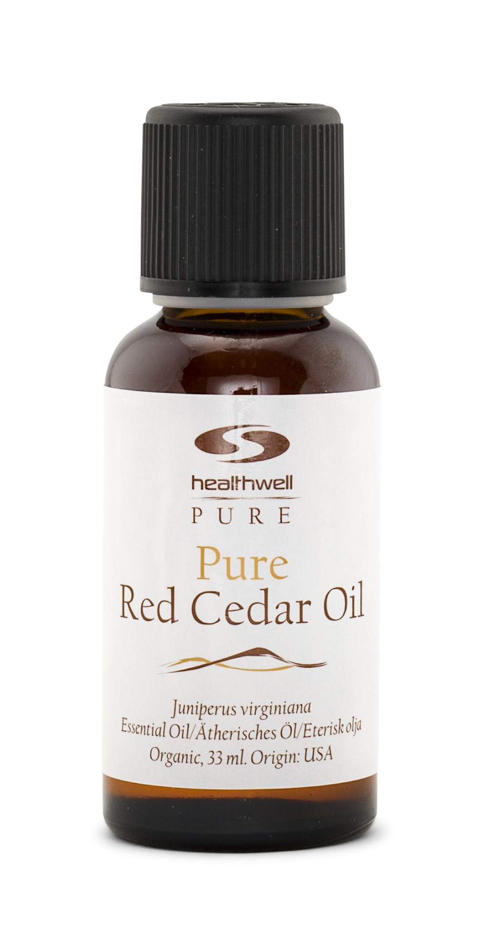 Pure Red cedar-olie ØKO er en æterisk olie, som er udvundet fra den amerikanske red cedar (Juniperus virginiana). Olien fremstilles ved dampdestillation af træet, og har mange forskellige anvendelsesområder. Udmærket til aromaterapi, hudpleje og parfume. Red cedar-olie ØKO fra Pure er en æterisk olie af den højeste kvalitet, og den er meget koncentreret, hvilket betyder, at kun få dråber er nødvendigt at anvende, og olien rækker derfor længe. Desuden er Red cedar-olie ØKO helt økologisk og fri for tilsætningsstoffer og vand, så du får et produkt af den bedste kvalitet. Duften er tydeligt træagtig, kombineret med bløde, søde noter.