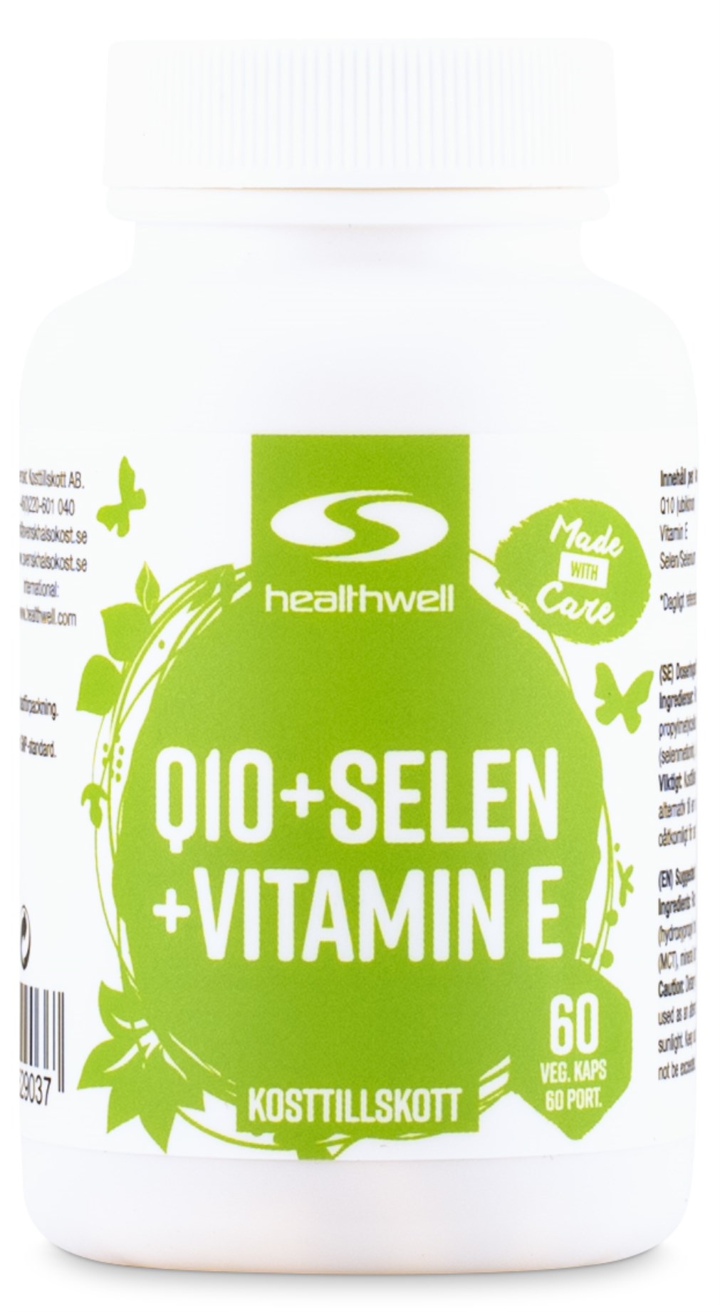 Healthwell Q10 + Selen + E-vitamin indeholder 100 mg ubiquinon Q10 per kapsel. Q10 findes naturligt i kroppen og findes primært i hjertet og hjernen, hvor det fungerer som en antioxidant, der beskytter cellerne. Stoffet spiller også en vigtig rolle i kroppens energiproduktion. Healthwell Q10 + Selen + E-vitamin er desuden beriget med E-vitamin og selen for den bedste effekt - to kraftfulde antioxidanter, der beskytter vores celler mod oxidativt stress. Selen er nødvendigt for, at kroppen kan optage Q10, og mineralet samarbejder med E-vitamin. Doseringen er 1 kapsel dagligt sammen med et måltid, et godt kostsupplement til dig, som vil sikre dine niveauer af Q10.