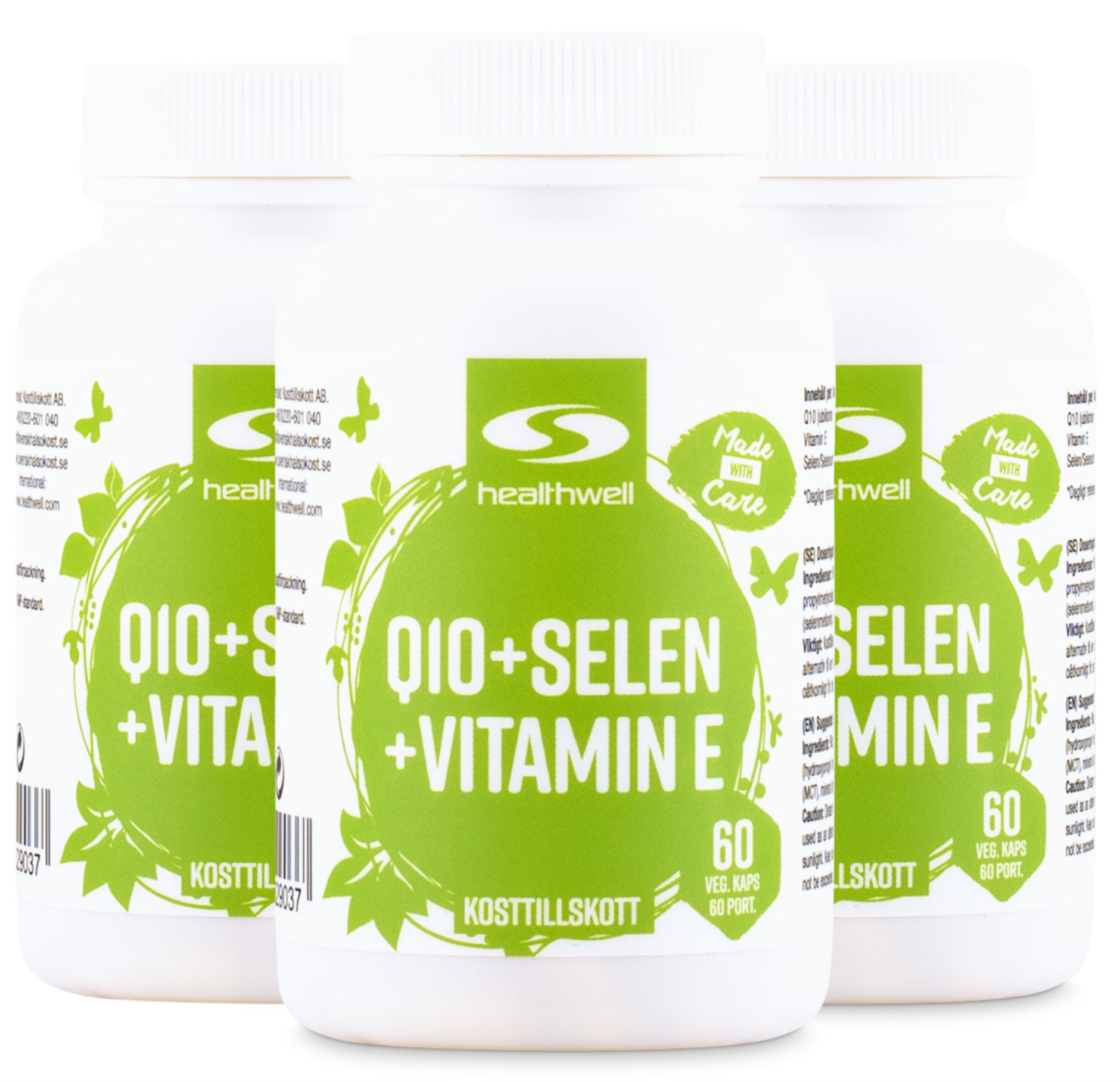 Healthwell Q10 + Selen + E-vitamin er desuden forstærket med antioxidanterne E-vitamin samt mineralet selen. Tilstedeværelsen af selen er nødvendigt for, at cellerne kan optage Q10, da det er involveret i processen med at omdanne Q10 til aktiv form i kroppen. Det gør disse to stoffer effektive sammen. Selen er desuden et mineral, som mange af os har svært ved at få nok af, da vores dyrkningsjord, som tidligere var vores primære selenkilde, nu er udtømt for selen.