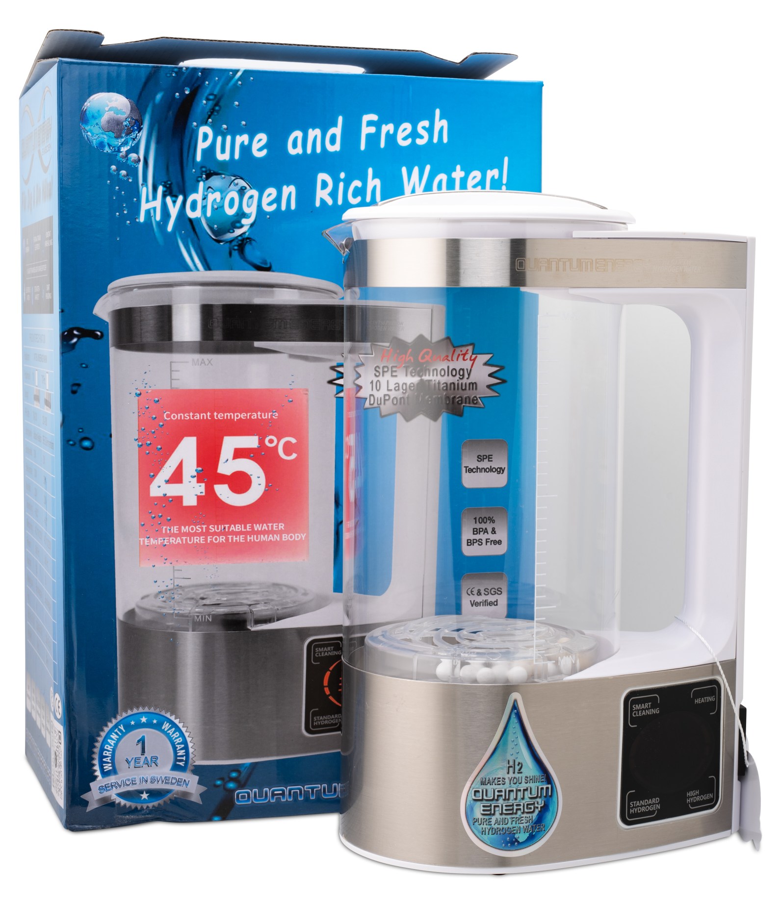Quantum Energy H2 Hydrogen Water Can er en avanceret hydrogenkande, der giver rent og hydrogenberiget vand til daglig brug. Kanden har en moderne elektrolyseteknik, der filtrerer uønskede stoffer væk og leverer vand af høj kvalitet og med masser af antioxidanter til at drikke, lave mad og skylle grøntsager.