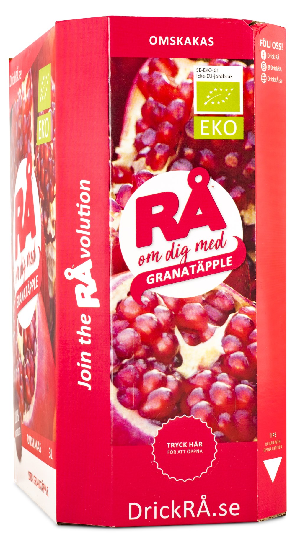 RÅ Granatæble ØKO fra WellNOx er en 100 % ren granatæblejuice, helt uden tilsætningsstoffer. Juicen fra økologiske granatæbler pasteuriseres og fyldes på bag-in-box. Det smarte ved bag-in-box er, at den ikke slipper luft ind, hvilket gør, at juicen holder sig frisk i mindst en måned efter åbning. Boksen indeholder 3 liter, hvilket svarer til en måneds forbrug.