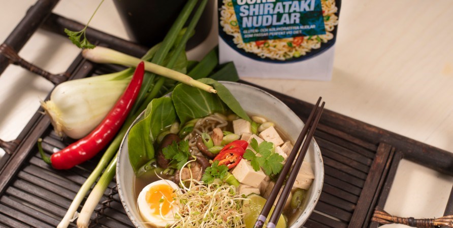 En god bouillon er grundlaget for en lækker ramen. Top med marineret tofu, pak choy og æg. Mættende og velsmagende!