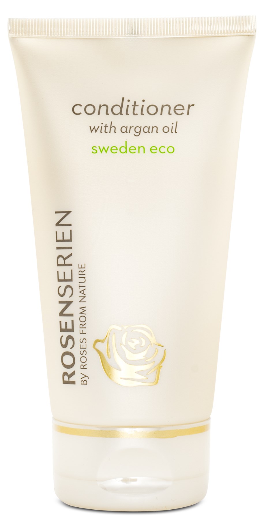 Rosenserien Conditioner with Argan Oil er en økologisk balsam, der fugter håret efter shampoo uden at tynge det ned. Balsamen passer til alle hårtyper og efterlader håret let at redde ud, skinnende og mindre kruset takket være den nærende arganolie og en kraftig fugtbinder fra birk. Rosenserien Conditioner indeholder kun naturlige ingredienser, er vegansk og godkendt af Animal Rights og PETA, hvilket sikrer, at produktet ikke er testet på dyr.