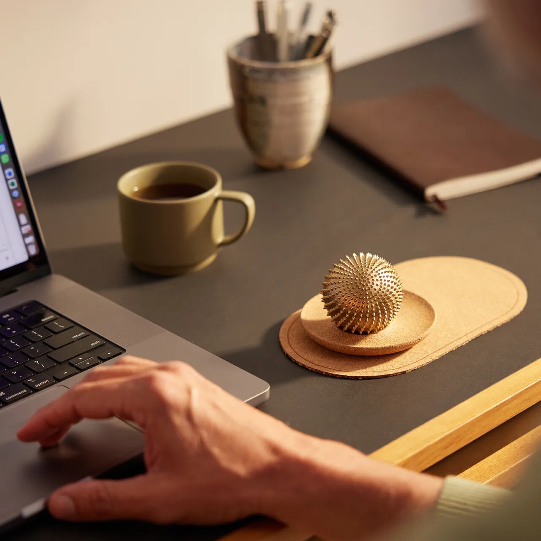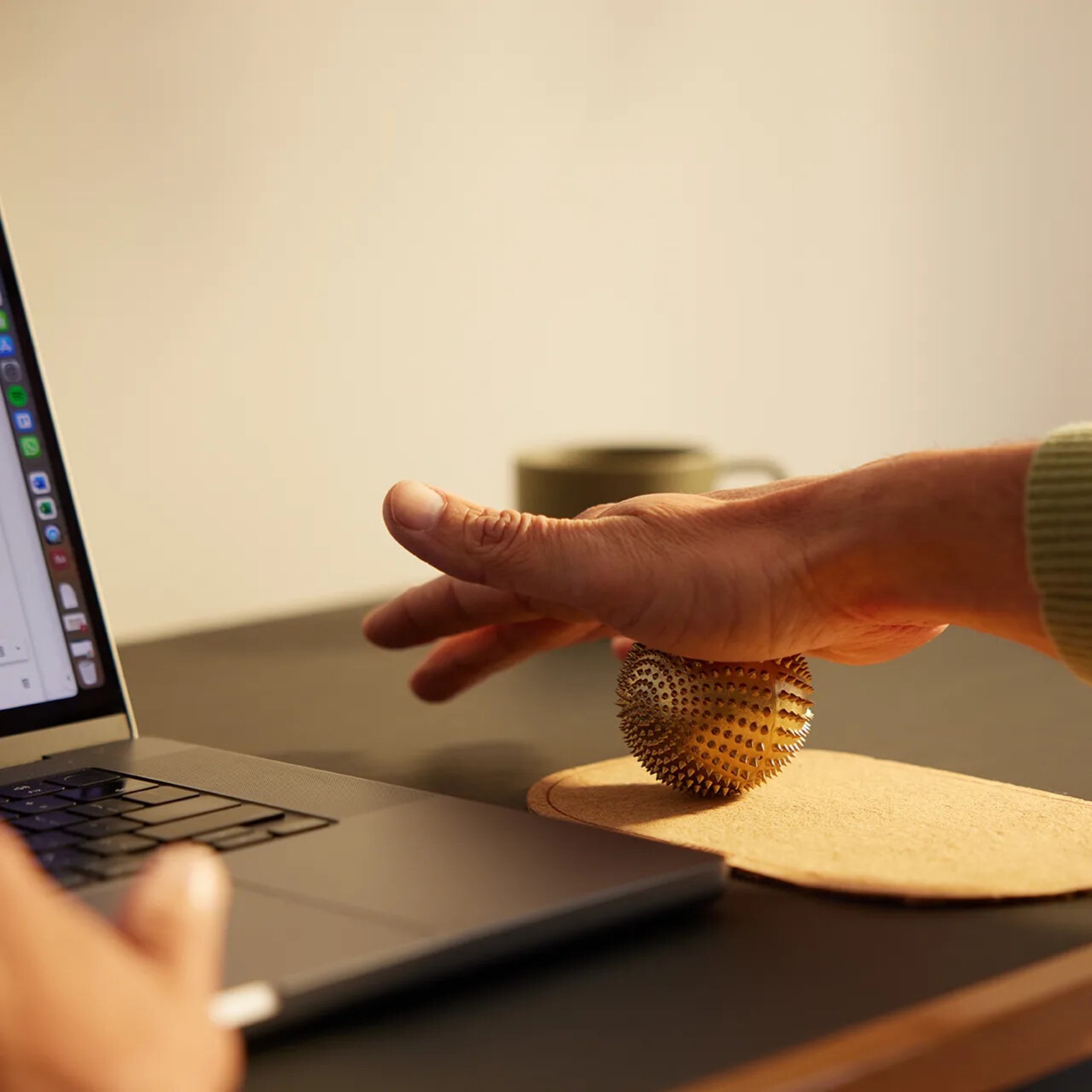Har du spændte muskler fra træning eller stress? Så kan en akupressurbold være noget for dig! Shakti Wonderball er en messingbold med 658 ekstra skarpe pigge, perfekt til at løsne op for spændte og ømme muskler i hele kroppen. Den vejer 200 gram og har en lille diameter på 6,5 cm, hvilket gør den perfekt til målrettede og præcise behandlinger såsom triggerpunktsmassage. En naturlig korkrulleplade og korkholder til bolden medfølger.