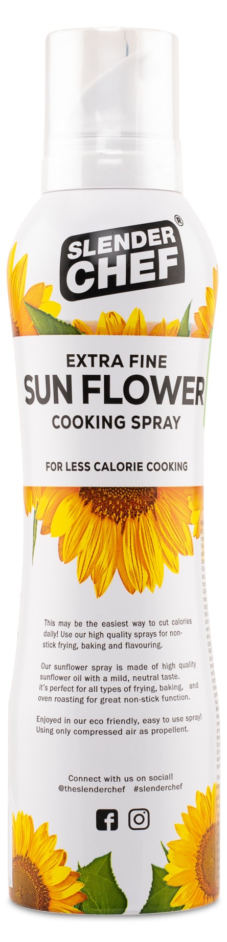 Slender Chef Cooking Spray Sunflower Oil er baseret på solsikkeolie.