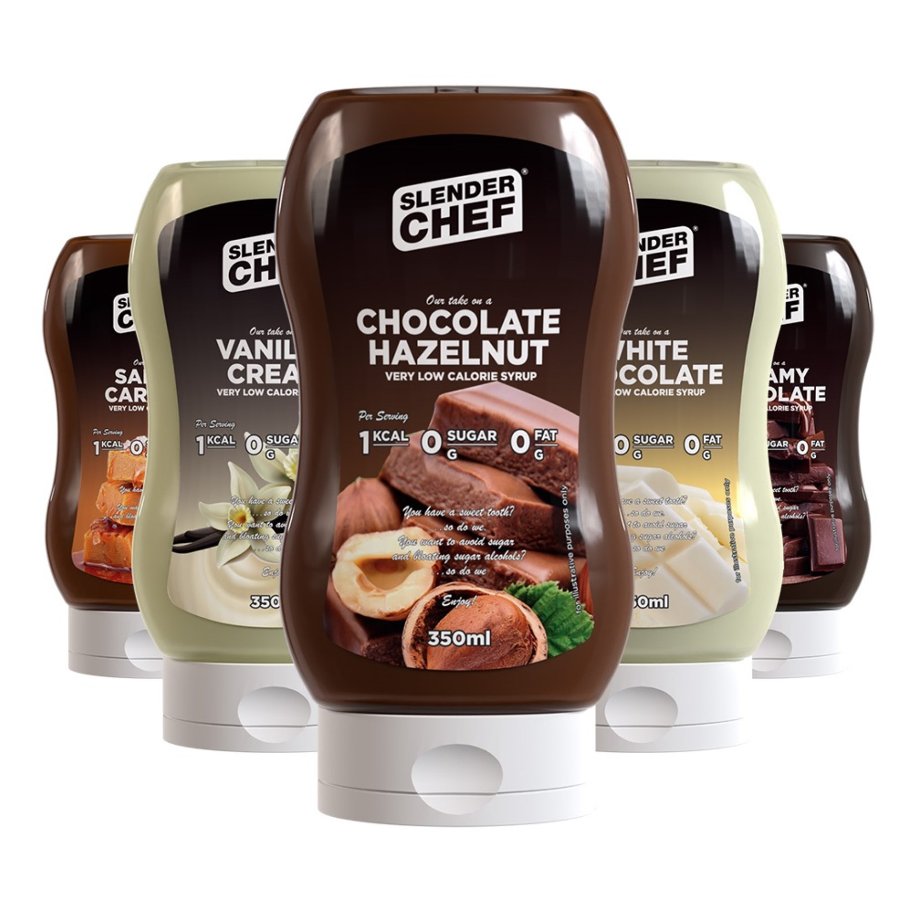 Disse magisk gode saucer fra Slender Chef er et sundere alternativ til traditionelle toppings, for dig, der ønsker at holde styr på dit sukkerindtag. Slender Chef Syrup er tilgængelig i flere forskellige varianter, der passer til alt fra grød, is og pandekager til bagværk og desserter. Saucerne er fri for både fedt og sukker, og indeholder så lidt som 1 kcal per portion - med andre ord kan du spise Slender Chef Syrup, selvom du er på en kaloriefattig diæt. Og bedst af alt, så har Slender Chef bestemt ikke ofret den gode smag; du kommer med sikkerhed til at ville prøve alle sammen for en mere luksuriøs hverdag!