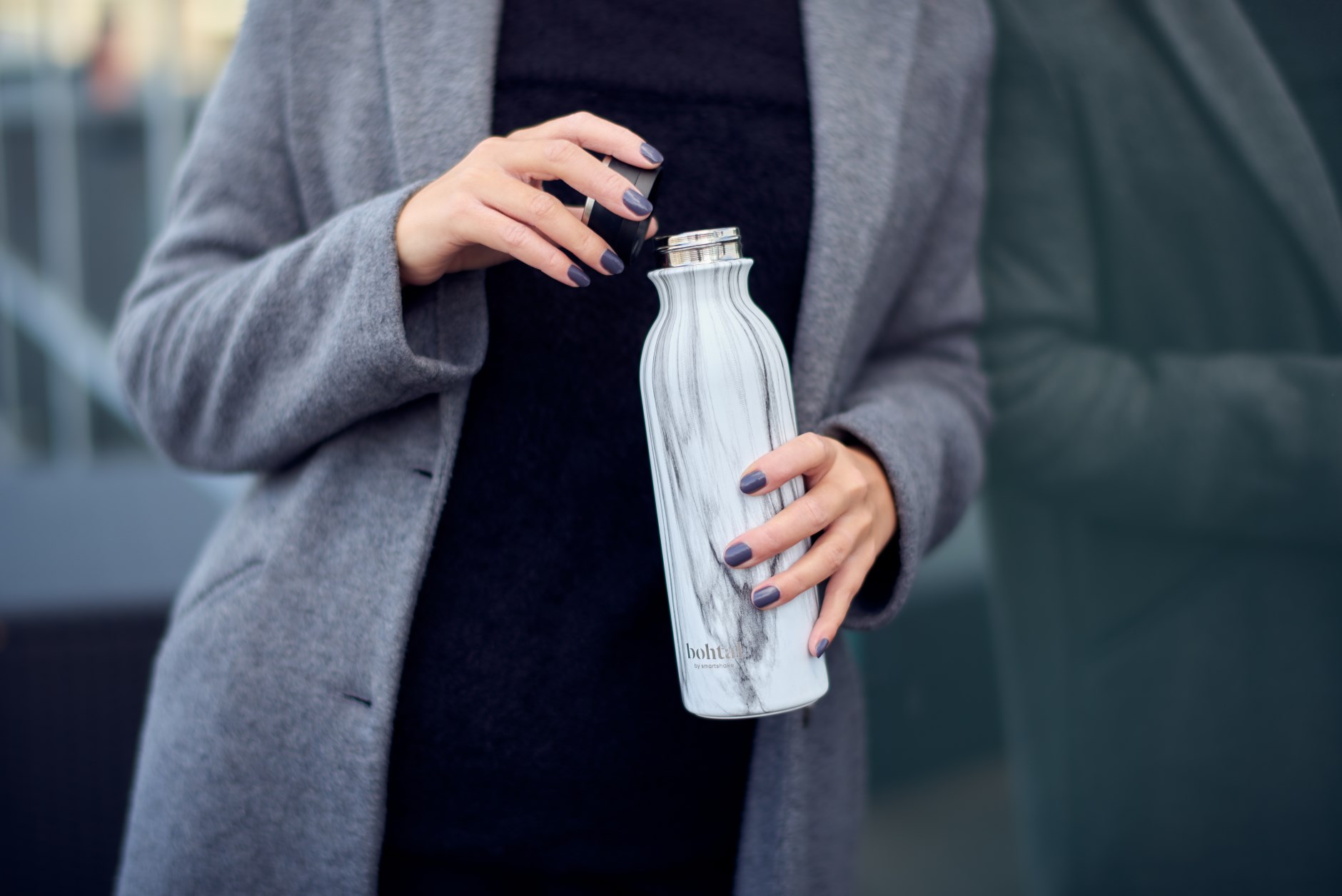 Smartshake Bohtal Insulated Flask er en pæn flaske i et tidløst design. Fremstillet af rustfrit stål i høj kvalitet med et sikkert låg og tætning. Bunden er lavet af silikone, så den står fast og stille. Flasken er designet med en vakuumteknologi med dobbelt sider for at holde den rigtige temperatur på din drik. Drikken kan holdes kølig i 24 timer og varm i 12 timer. Perfekt flaske til fitnesscenteret, derhjemme eller på arbejdspladsen!