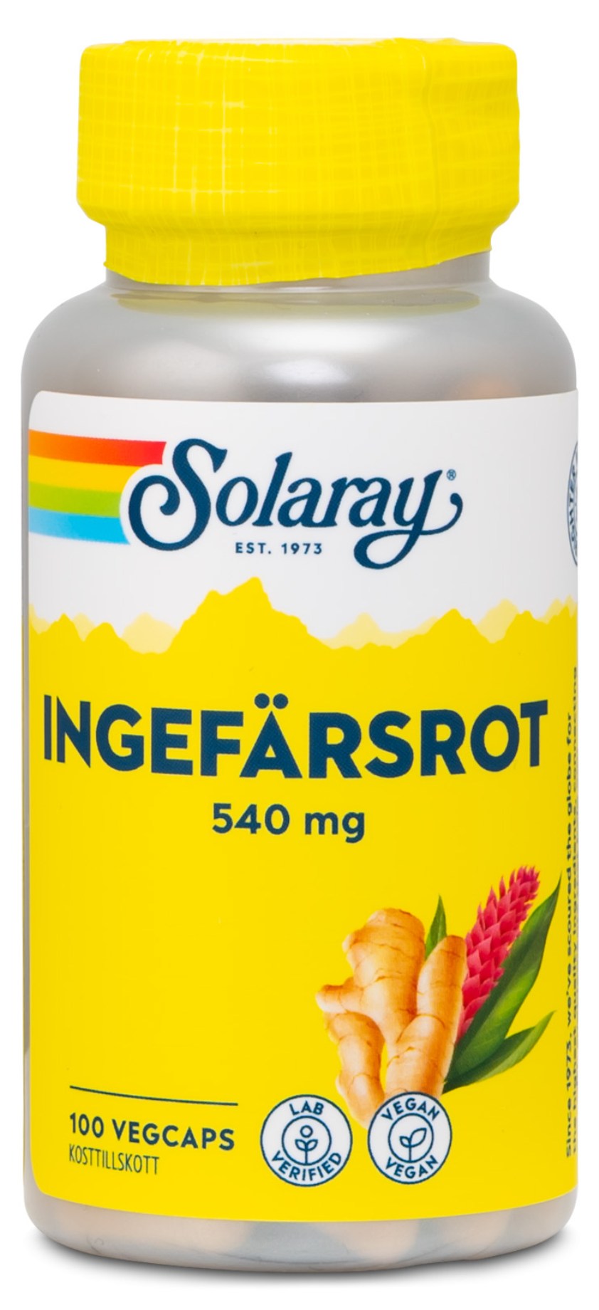 Solaray Ingefærrod er veganske kapsler med ingefær, med 540 mg hel ingefær per kapsel. Ingefærrod indeholder naturligt forekommende æteriske olier såsom gingeroler og shogaoler. Gingeroler er et særligt interessant stof og en af årsagerne til, at ingefær er blevet brugt i mad og drikke i forskellige kulturer verden over. Ingefærs rige næringsindhold gør den også populær i forskellige husråd.