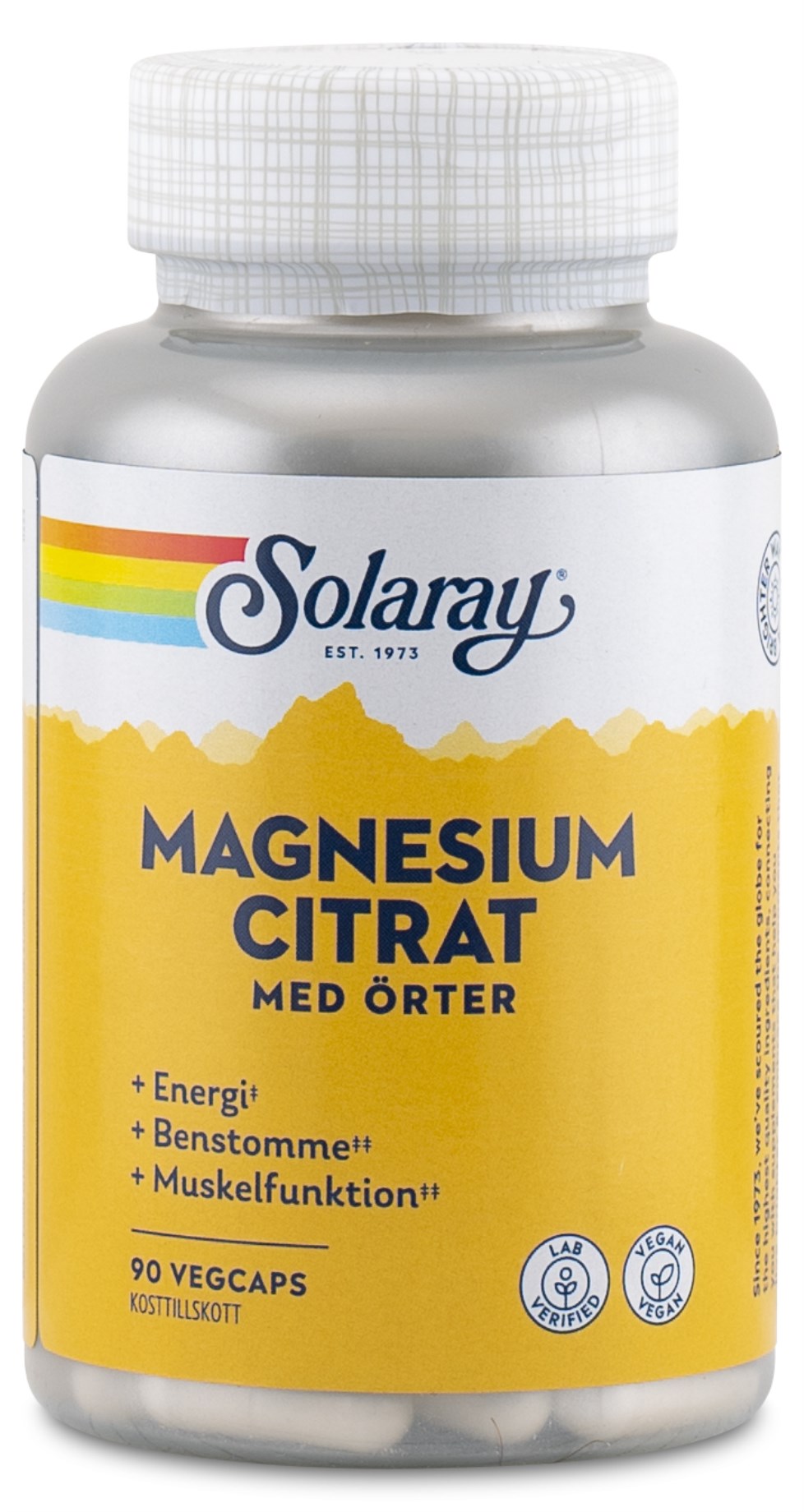Solaray Magnesium Citrate indeholder kapsler med magnesiumcitrat i en base af urter for at give synergieffekt og lette optagelsen. Magnesium er en af de vigtigste mineraler i kroppen, hvor det har mange forskellige funktioner. Blandt andet bidrager magnesium til cellernes energiproduktion og hjælper med at reducere træthed og udmattelse. Det er også nødvendigt for nervesystemet og bidrager til at opretholde normal knoglestruktur og muskelfunktion. Solaray Magnesium Citrate er kapsler med et fint pulver for en god og skånsom optagelse.