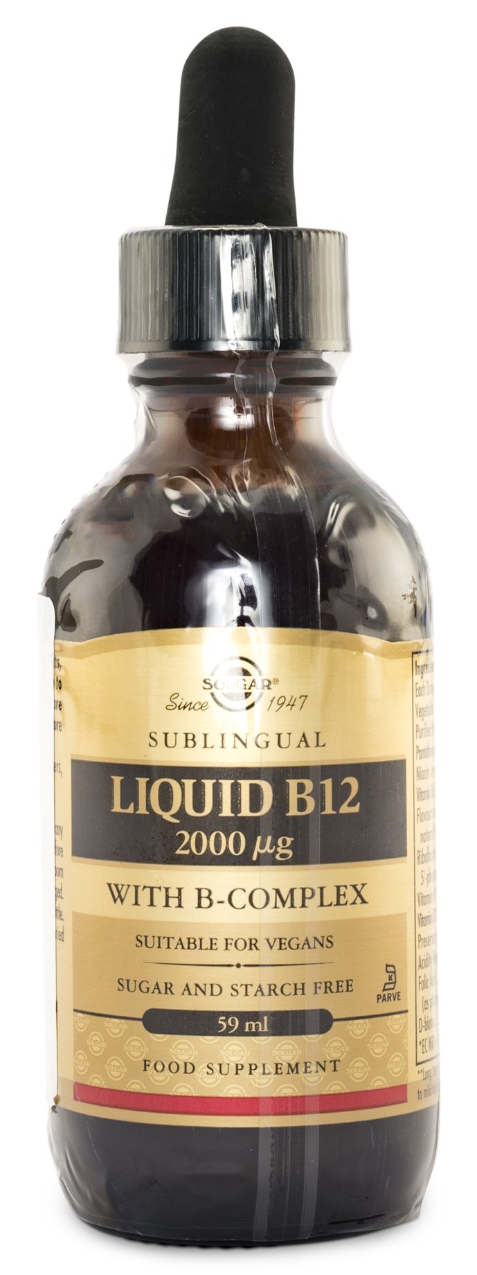 Solgar® Liquid B12 2000 Ug er et flydende vitaminboost af B-vitaminer. Det indeholder bl.a. B12-vitamin, folsyre, biotin og B6-vitamin. B-vitaminer har mange vigtige funktioner i kroppen, f.eks. i forbindelse med cellernes omsætning, nervernes normalfunktion samt proteinomsætningen. Disse vitaminer i flydende form er et godt alternativ til personer, som har svært ved at synke tabletter. Smagen er naturlig og kommer fra frugt og bær. Læg gerne dråberne under tungen, og vent 10 sekunder, før du synker, for at opnå et mere effektivt optag.