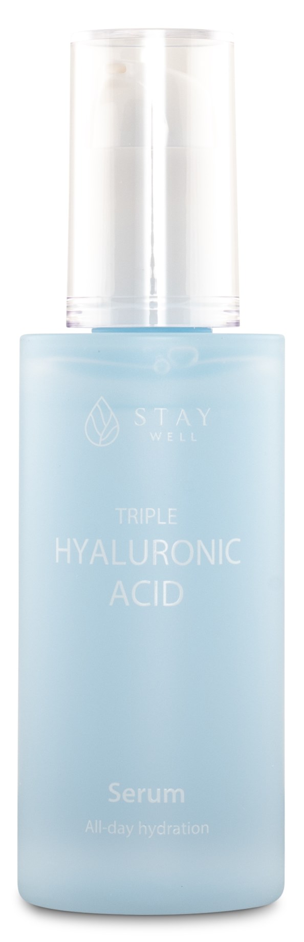 Fugt dit ansigt med StayWell Triple Hyaluronic Acid Serum. Et serum, der er med til at genoprette fugtbalancen og styrke hudbarrieren og skaber et fyldigere og mere levende look. StayWell Triple Hyaluronic Acid Serum indeholder 2,0 % hyaluronsyre i tre forskellige molekylstørrelser for den bedste absorption og hydrering. Hyaluronsyre er et stof i huden, der naturligt aftager, når vi bliver ældre. Velegnet til blandet og tør hud og kan påføres både morgen og aften.