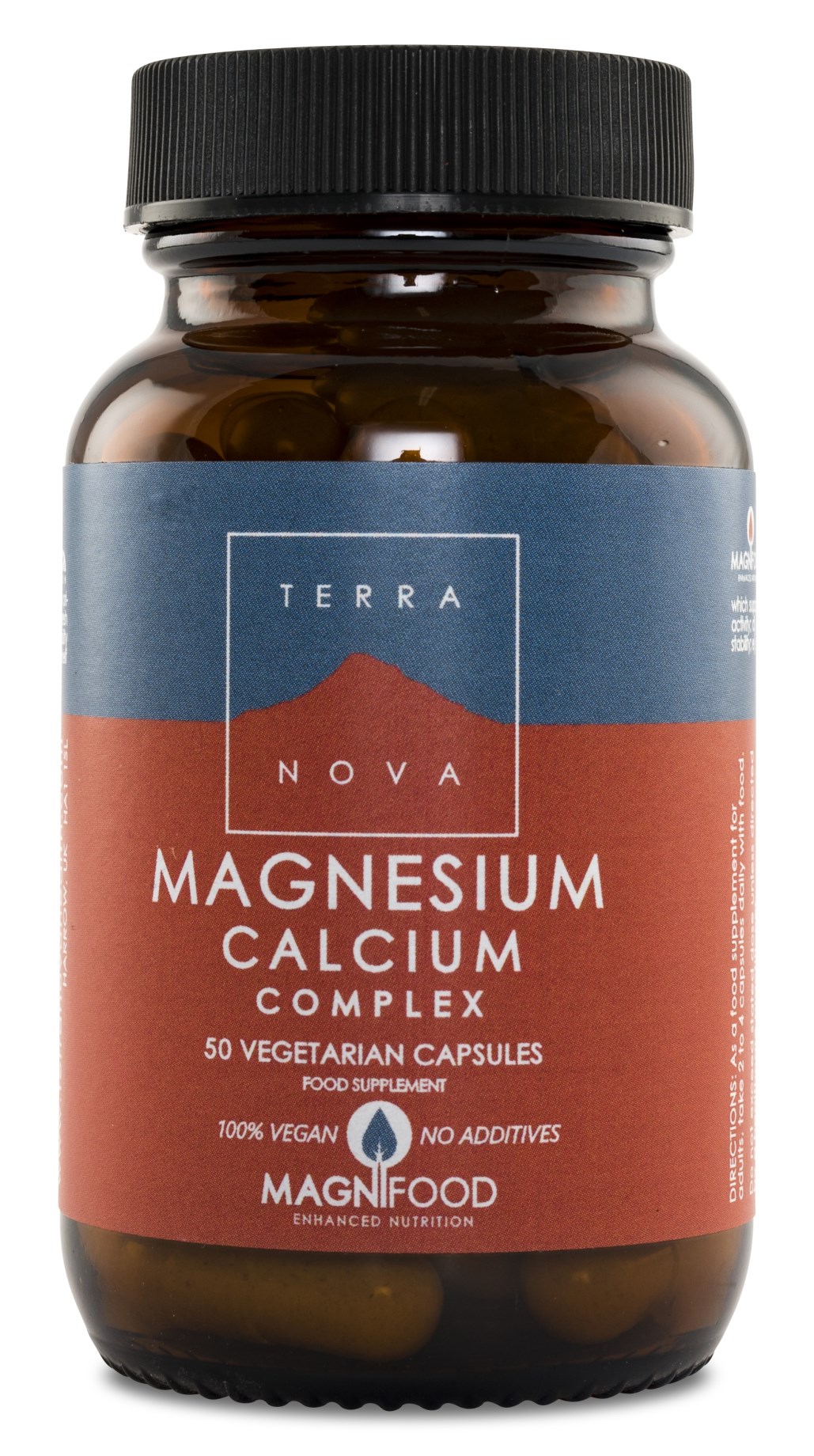 Terranova Magnesium Calcium Complex indeholder en optimal balance mellem magnesium og calcium i forholdet 2: 1. Det betyder, at magnesium er inkluderet i den dobbelte mængde calcium, hvilket er det, de fleste mennesker stræber efter i denne kombination, da mineralerne modvirker hinanden, og det er calcium, som vi normalt har lettere at få i os. En daglig dosis giver i alt 375 milligram magnesium og 188 milligram calcium. Vegetabilske kapsler er forstærket med Terranovas patenterede anlægskompleks Magnifood®, der beskytter mineralerne for maksimal effekt i kroppen.