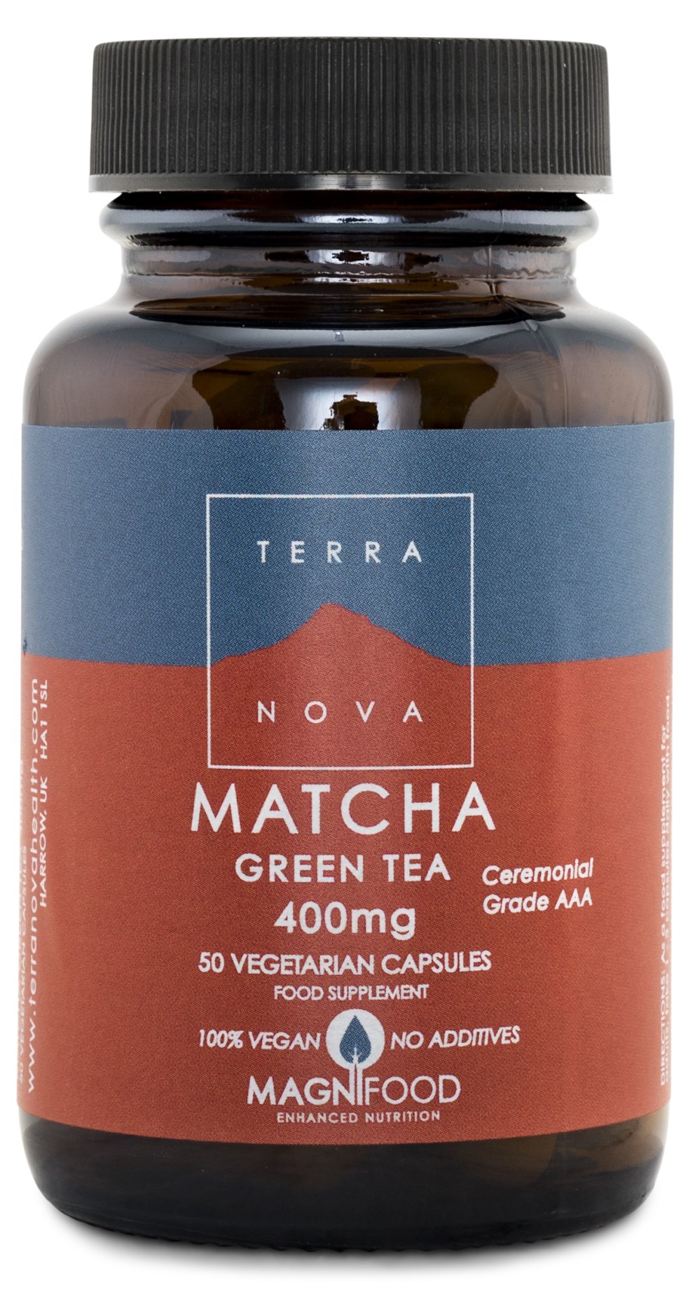 Terranova Matcha Green Tea er et vegetabilsk kosttilskud med grøn matcha te, 100% AAA Matcha, der er tørret omhyggeligt. En kapsel indeholder 400 mg matcha (Camellia sinensis) og er fri for unødvendige fyldstoffer, bindemidler, farvestoffer og gelatine. Den anbefalede dosis er 1-3 kapsler per dag sammen med et måltid.