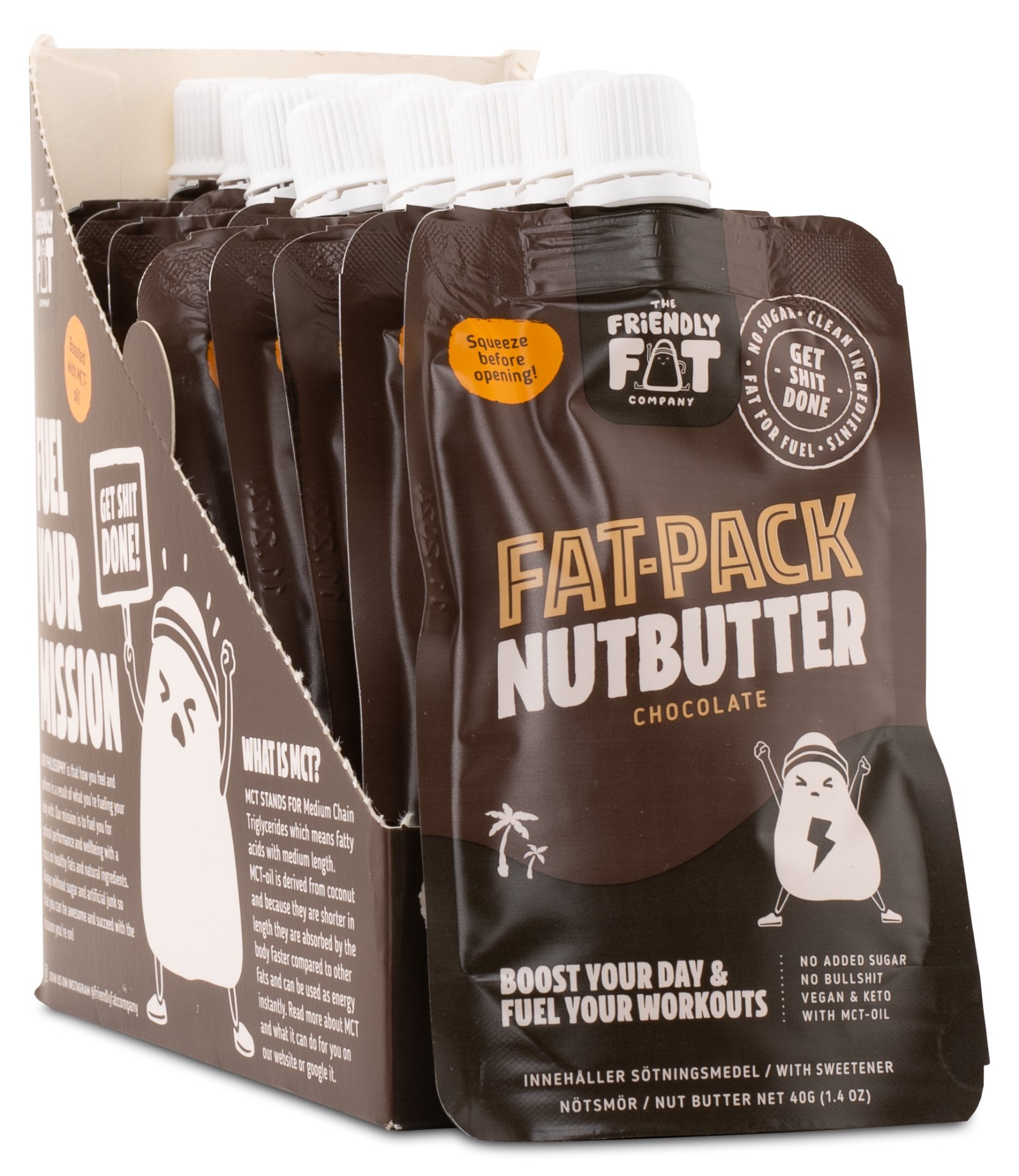 The Friendly Fat Company Fat-Pack Nutbutter er et cremet og lækkert nøddesmør, perfekt som snack eller når du har brug for ekstra energi. Nøddesmørret har en dejlig smag af ristede jordnødder og mandler. Naturlig og næringsrig snack, der er nem at tage med, da det kommer i en praktisk portionspakke. Rig på sunde fedtstoffer og MCT-olie fra kokosnød, hvilket giver hurtig og langvarig energi.
