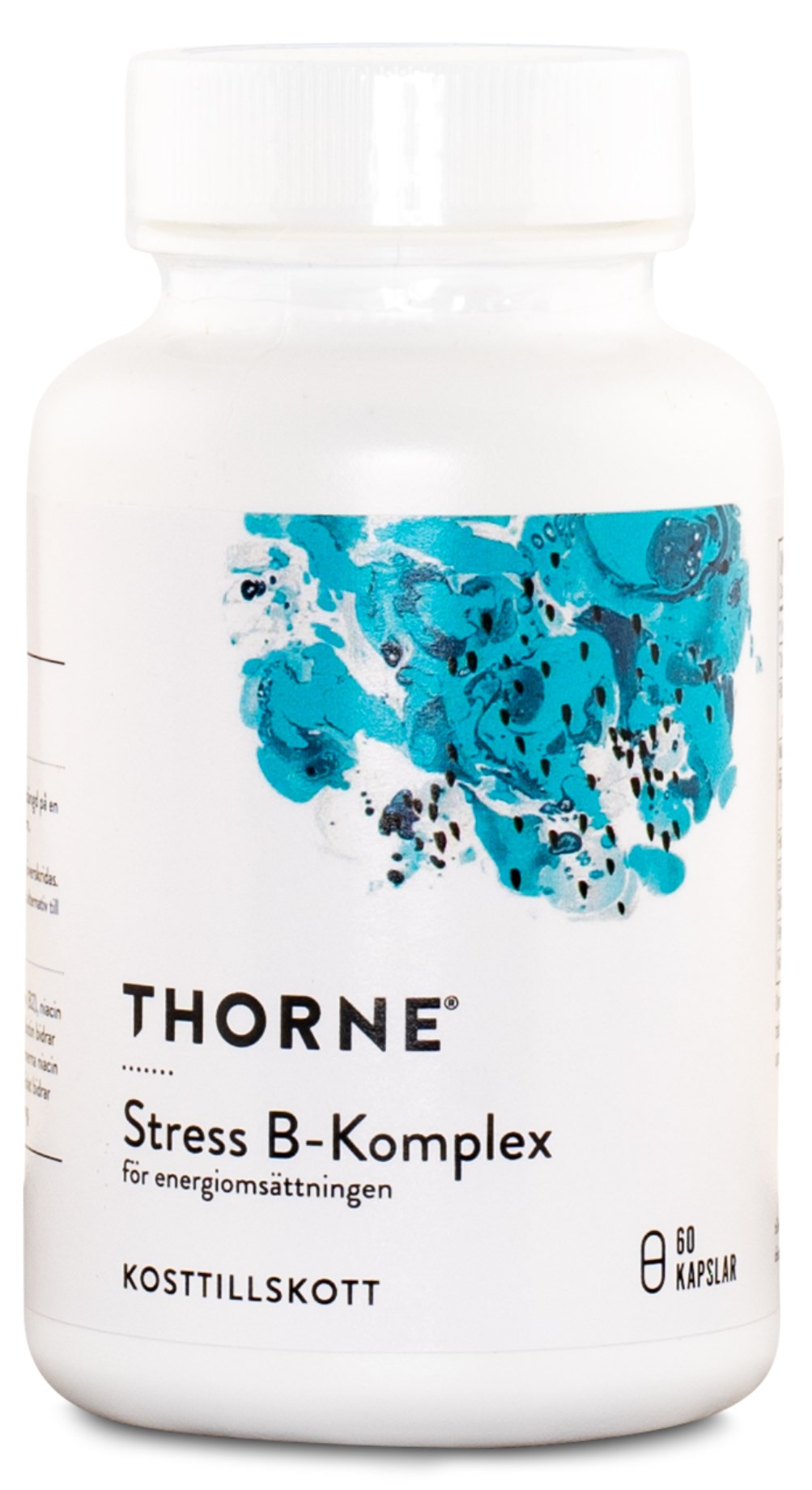 Thorne Research Stress B-Complex er kapsler med alle de vandopløselige B-vitaminer og med en ekstra koncentreret dosis vitamin B5 (pantothensyre). Pantothensyre bidrager blandt andet til at reducere træthed og udmattelse, til et normalt stofskifte og til en normal mental præstation. Frem for alt spiller vitamin B5 en vigtig rolle i omdannelsen af kulhydrater og fedt, til energi i kroppen. Thorne Research Stress B-Complex indeholder 250 mg letoptagelig pantothensyre pr. kapsel. Foruden pantothensyre indeholder kapslerne også biotin, som bidrager til den normale kvalitet af håret, vitamin B12, som bidrager til normalt energistofskifte og vitamin B3 (niacin).
