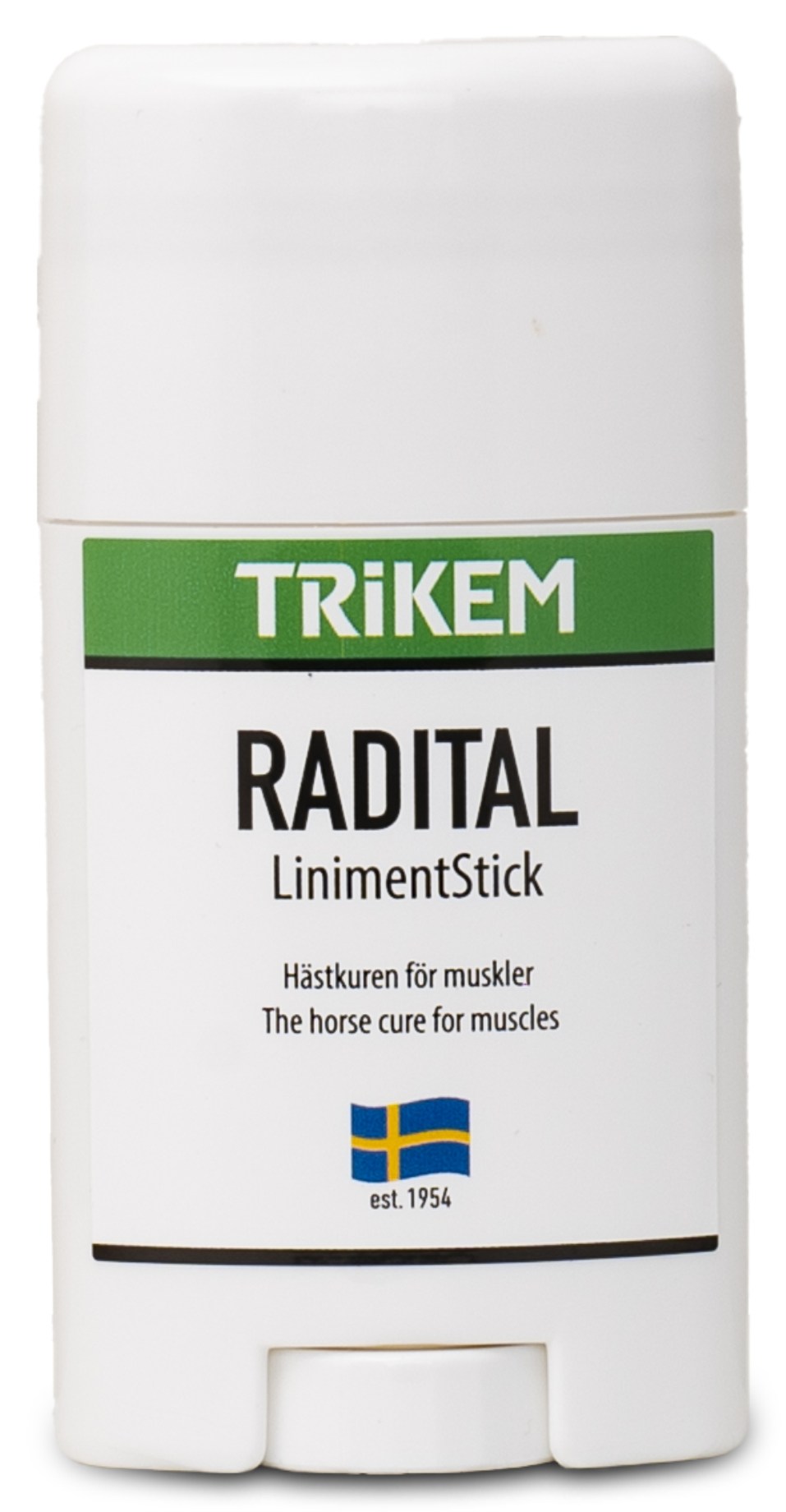 Trikem Radital Liniment Stick er et effektivt liniment i form af en praktisk stift. Det stimulerer blodgennemstrømningen, kan fremskynde restitutionen og giver midlertidig lindring ved ømhed. Ved påføring føles det først kølende for derefter at overgå til en langvarig varme, som hjælper muskler, sener og led med at slappe af.