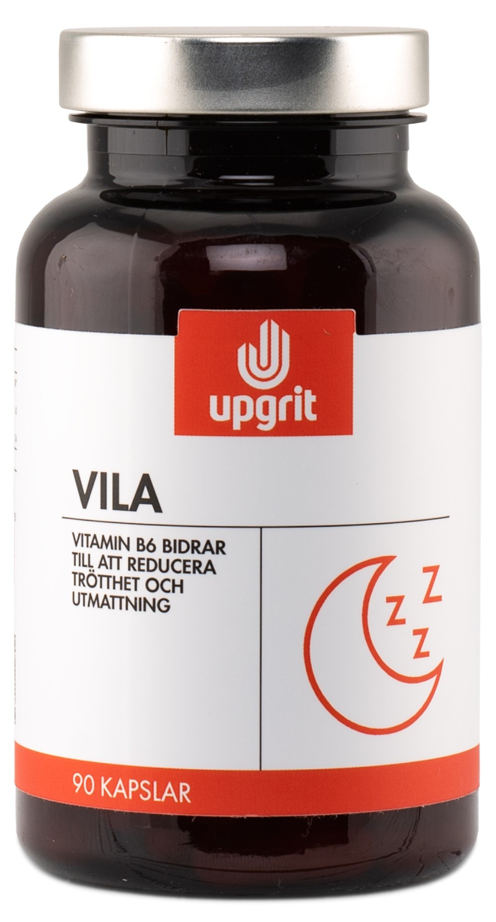 Upgrit Vila er et kosttilskud specielt designet til at hjælpe dig med at slappe af og slappe af om aftenen. Produktet består blandt andet af magnesium og vitamin B6, som begge bidrager til at mindske udmattelse og træthed og til at opretholde en normal psykologisk funktion. Vitamin B6 er også vigtigt for at regulere hormonaktiviteten, som spiller en vigtig rolle i at reducere træthed og udmattelse. Produktet indeholder også glycin, som bruges op i leveren. Glycin er også vigtigt for afslapning.