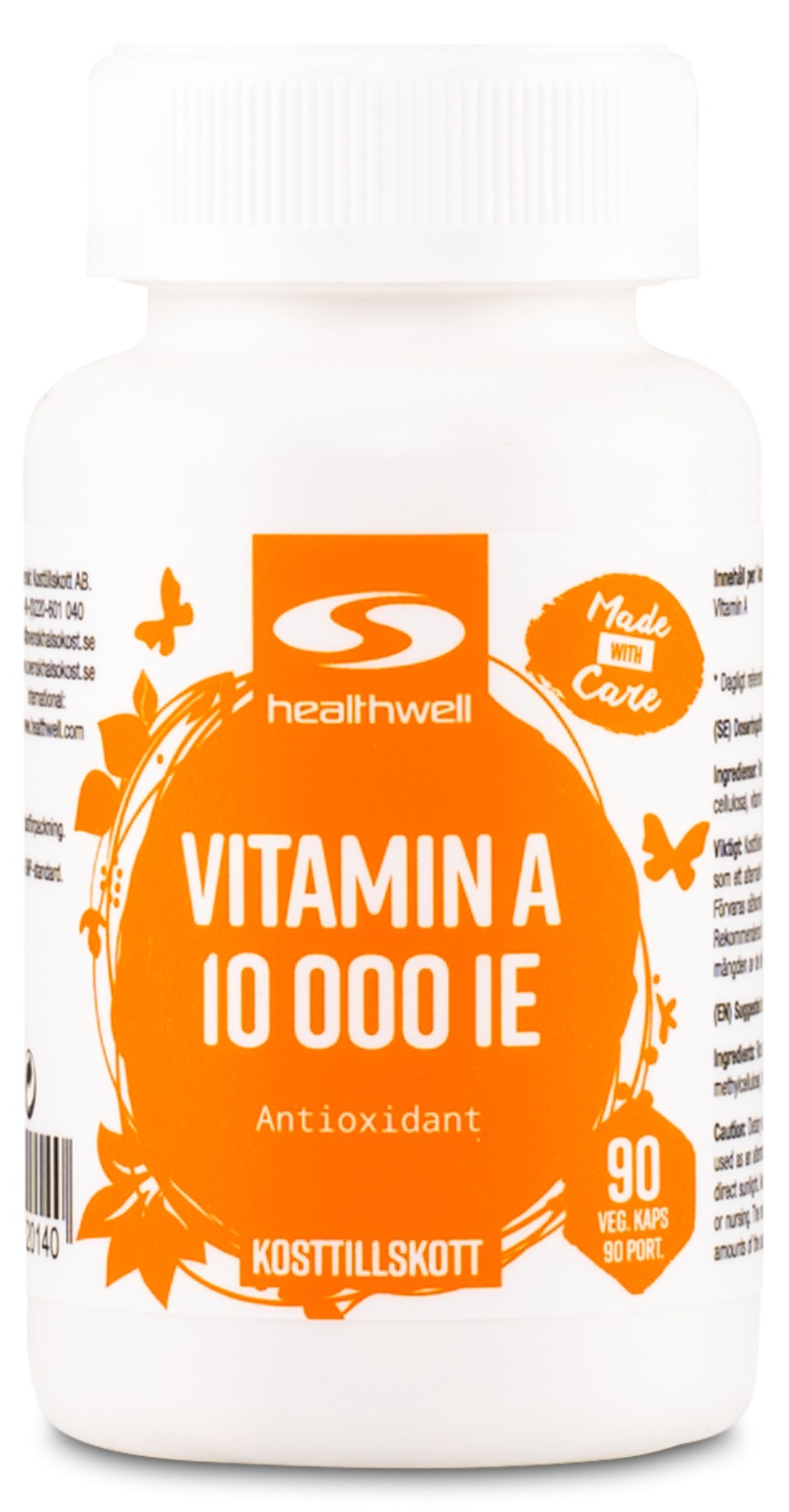 Healthwell A-vitamin 10 000 IE er et ekstra højdoseret A-vitamintilskud med 3,3 milligram per dosis, i vegetabilske kapsler. Derudover er MCT-olie fra kokosnød tilsat, for at sikre den bedste optagelse. A-vitamin bidrager til et normalt immunsystem Anbefalet dosis er 1 kapsel per dag, f.eks. i perioder med høj belastning af immunsystemet.
