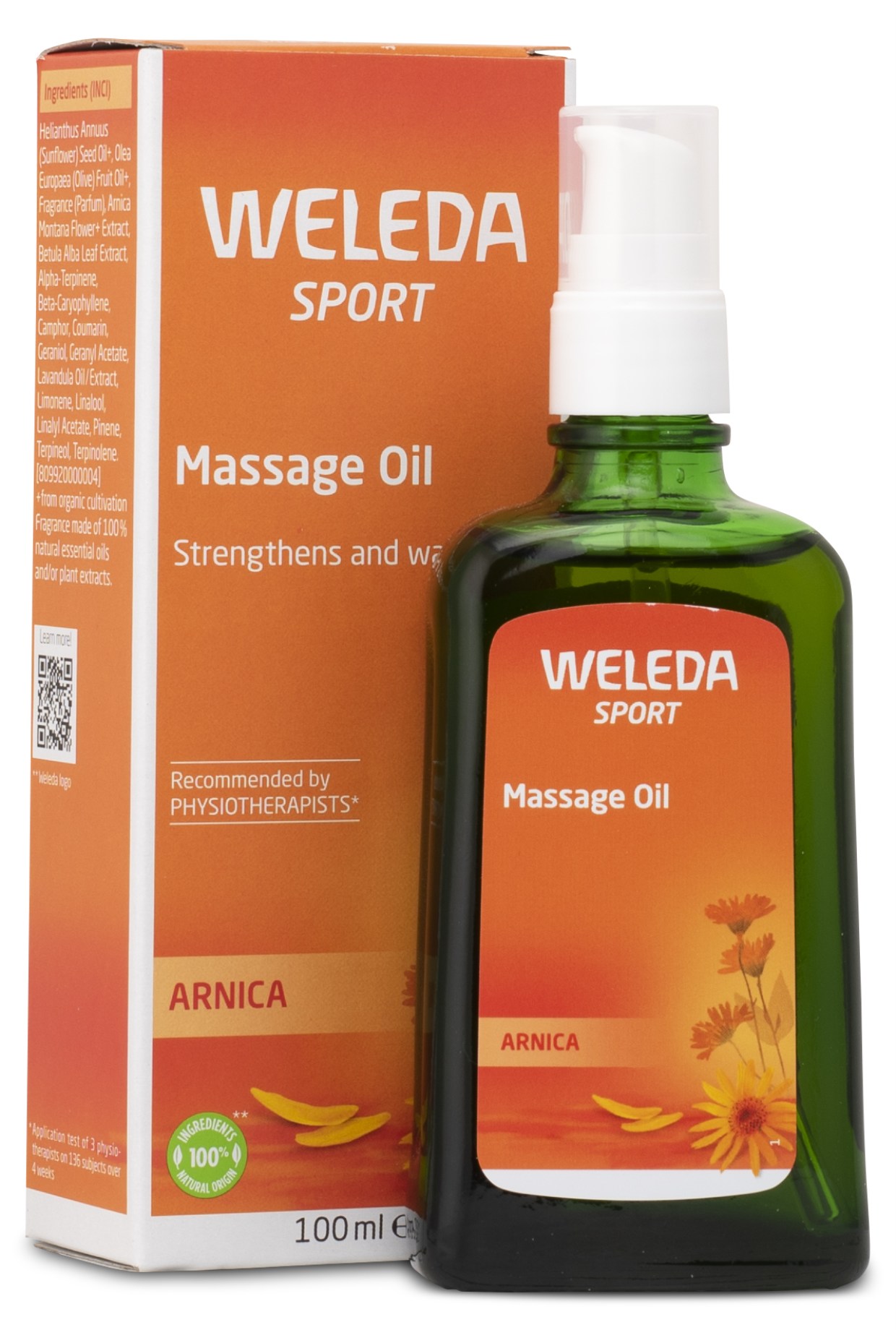 Massér Weledas massageolie ind på ømme, stive muskler eller ved fysisk aktivitet for at sprede lidt varme. Den indeholder en skøn blanding af solsikkeolie og olivenolie samt arnika, som støtter naturlige hudfunktioner og desuden virker plejende for huden.