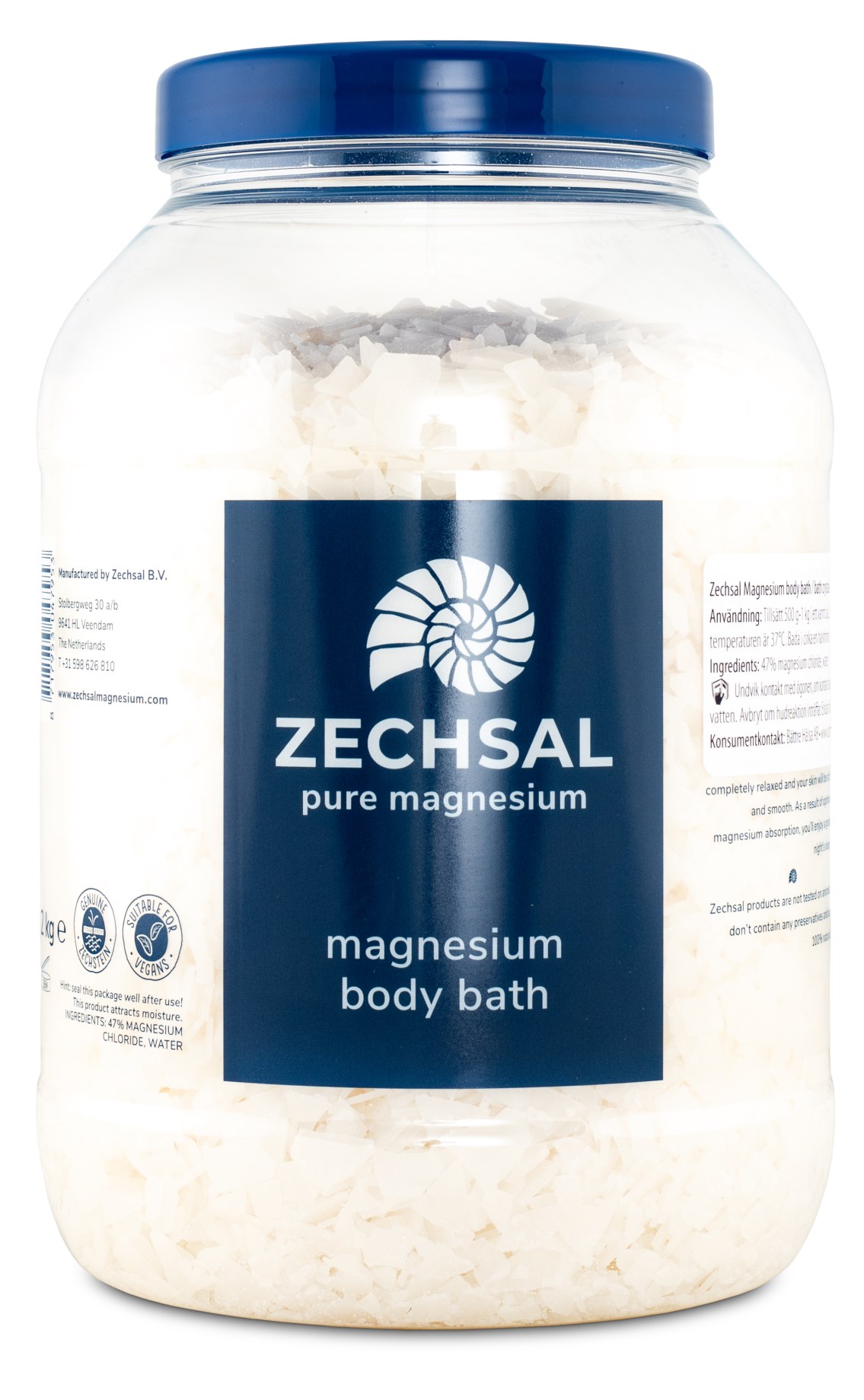 Zechsal Magnesium Kropsbad er rene magnesiumbadekrystaller, som er perfekte til et dejligt og afslappende bad, der også beroliger huden. De er også velegnede til et fodbad, hvis du ikke har et badekar. Magnesiumkrystallerne er 100 % naturlige og har en koncentration på 47 %. En spand på 2 kg rækker til 4 kropsbade eller 16 fodbade. For total afslapning og effektiv magnesiumoptagelse!